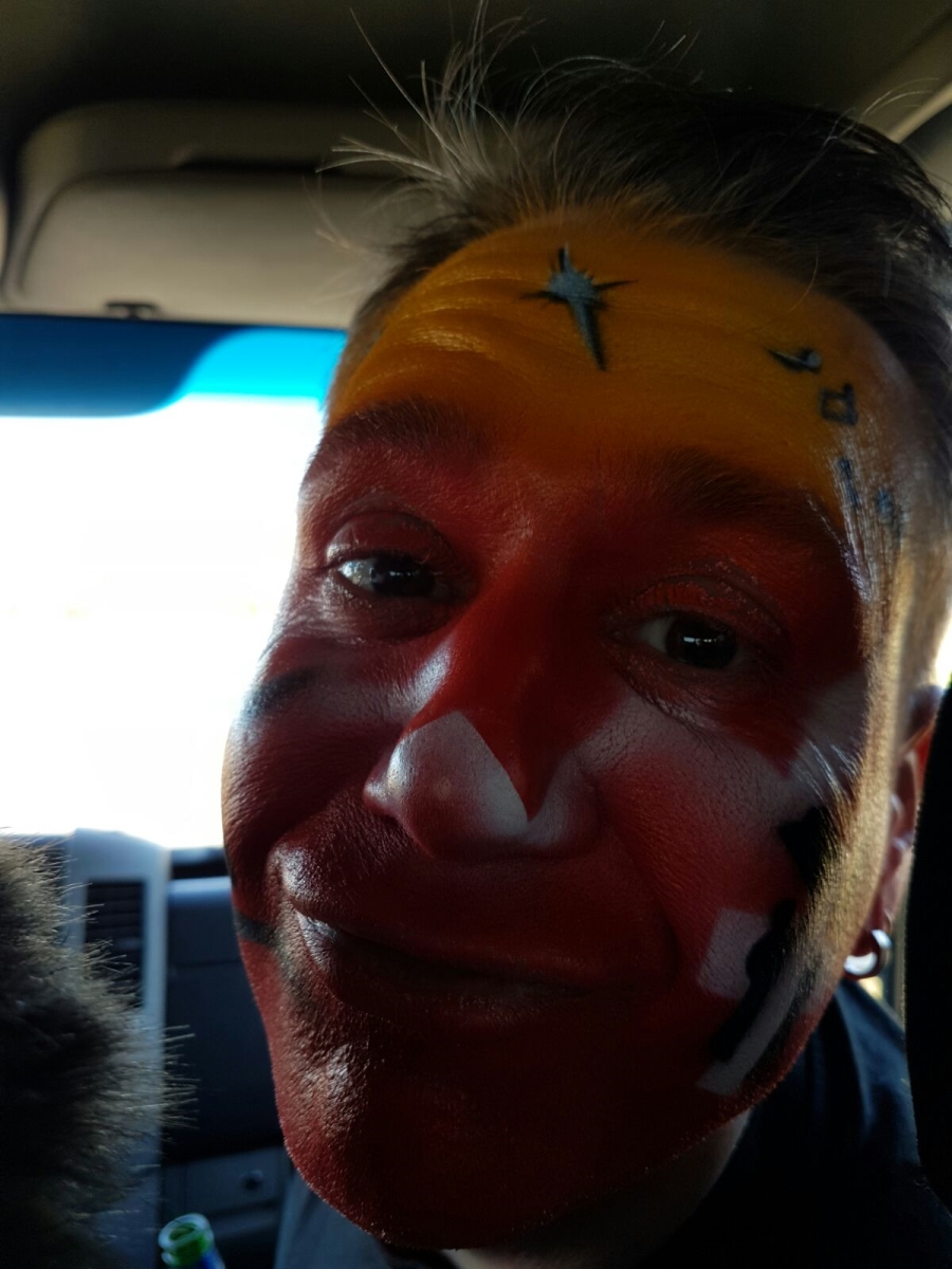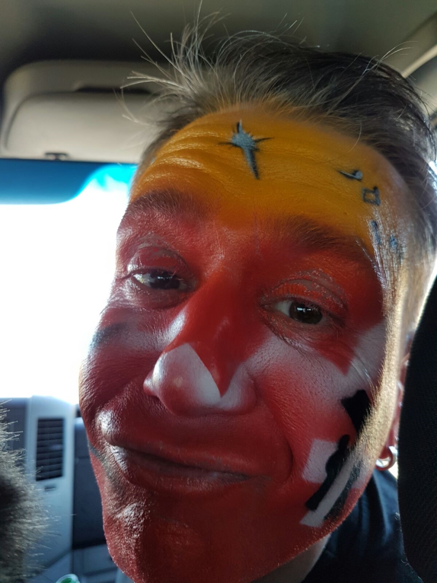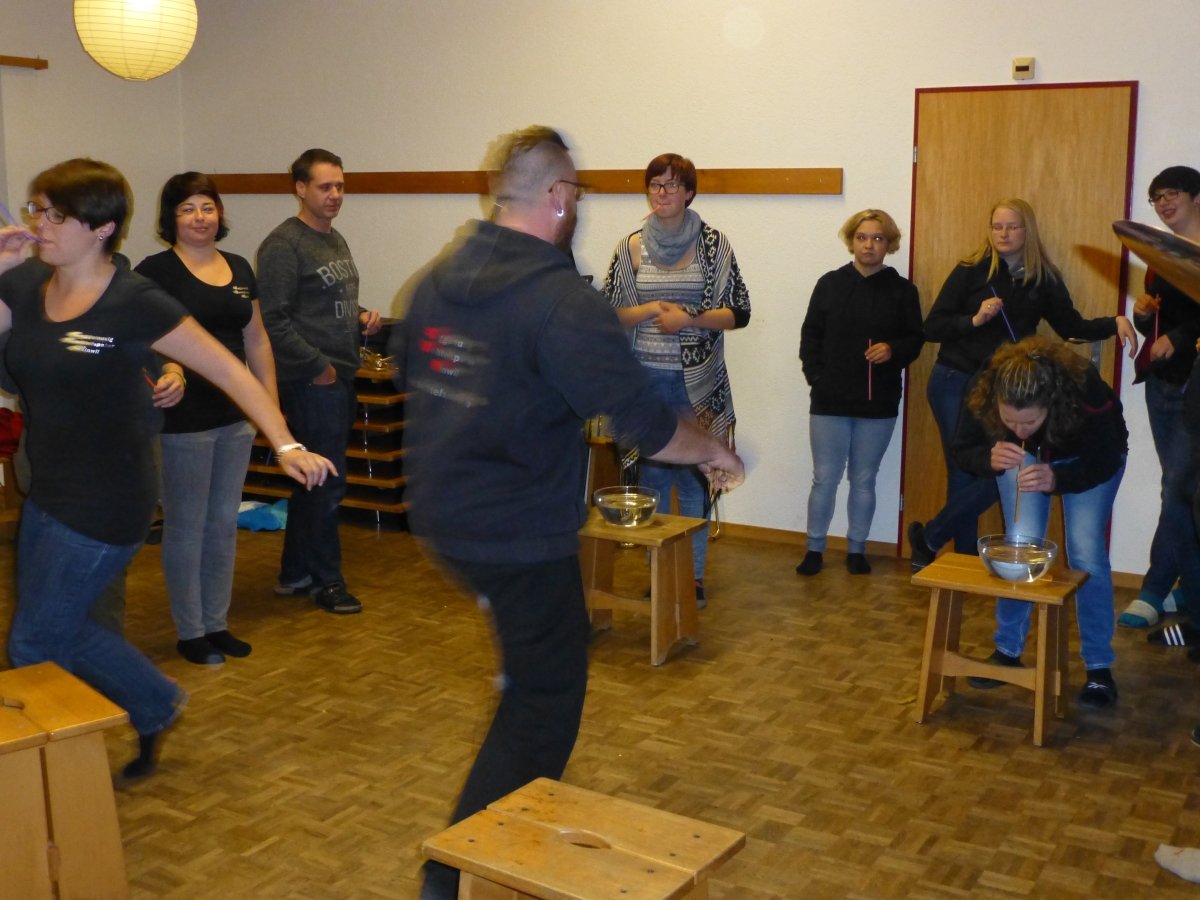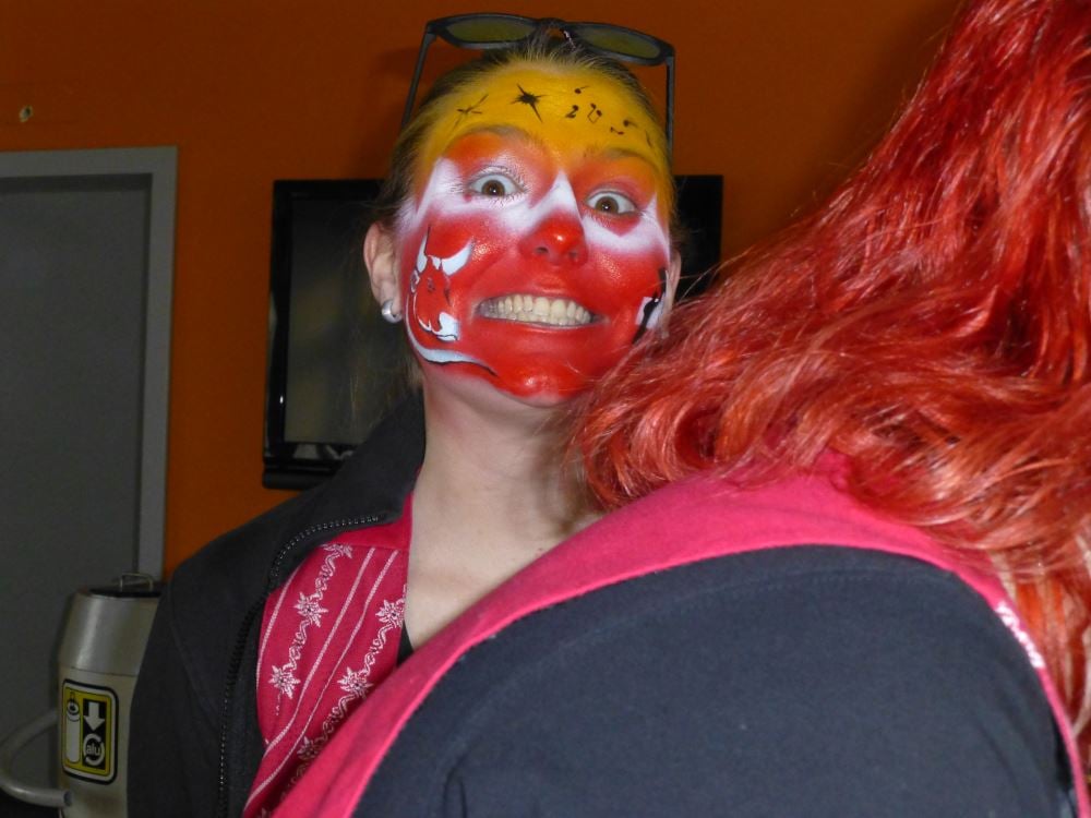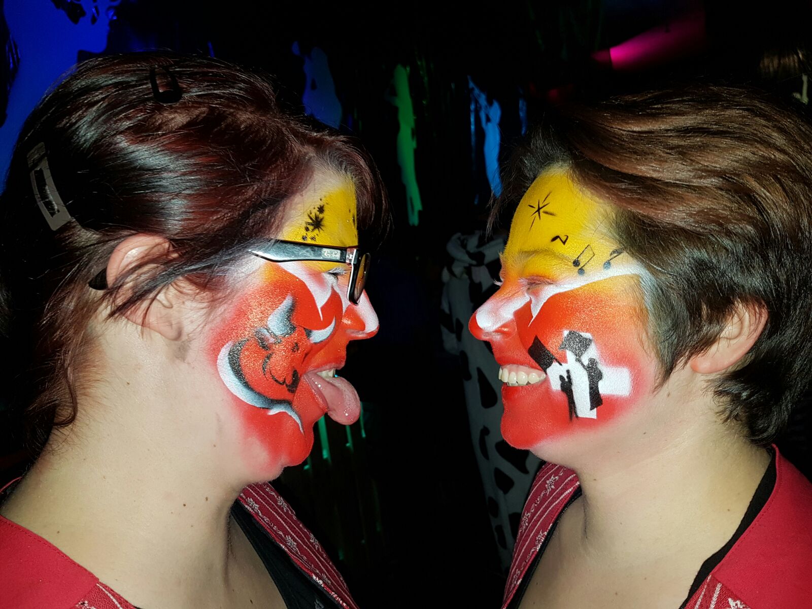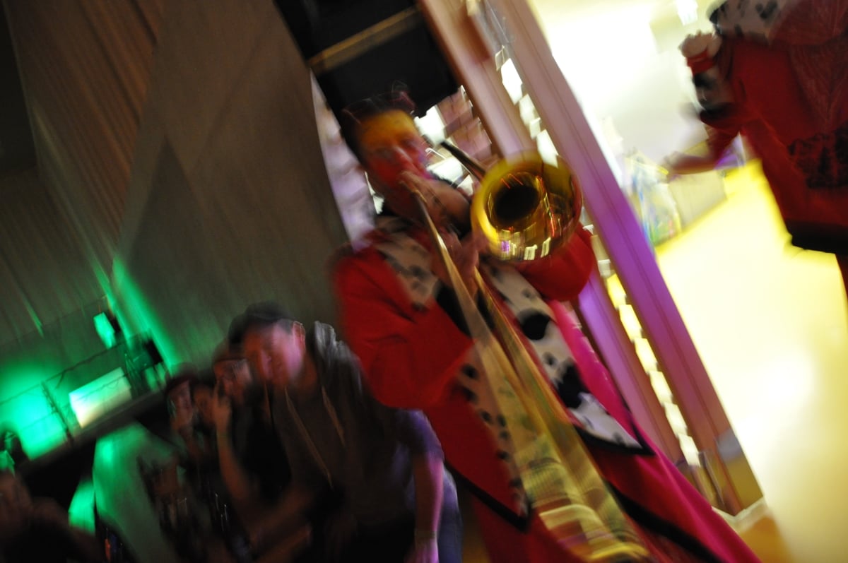 Am 7i isch äs losgange mit schminke. Wo mer dänn alli Farb im Gsicht gha händ hät eusi Heimfasnacht chöne losgah. Am 9i isch euse ersti Uftritt im Hirschesaal gsi. Chum isch er fertig gsi, hämer eusi Instrument id Autos glade und sind uf Steg is Restaurant Lenze go spiele.