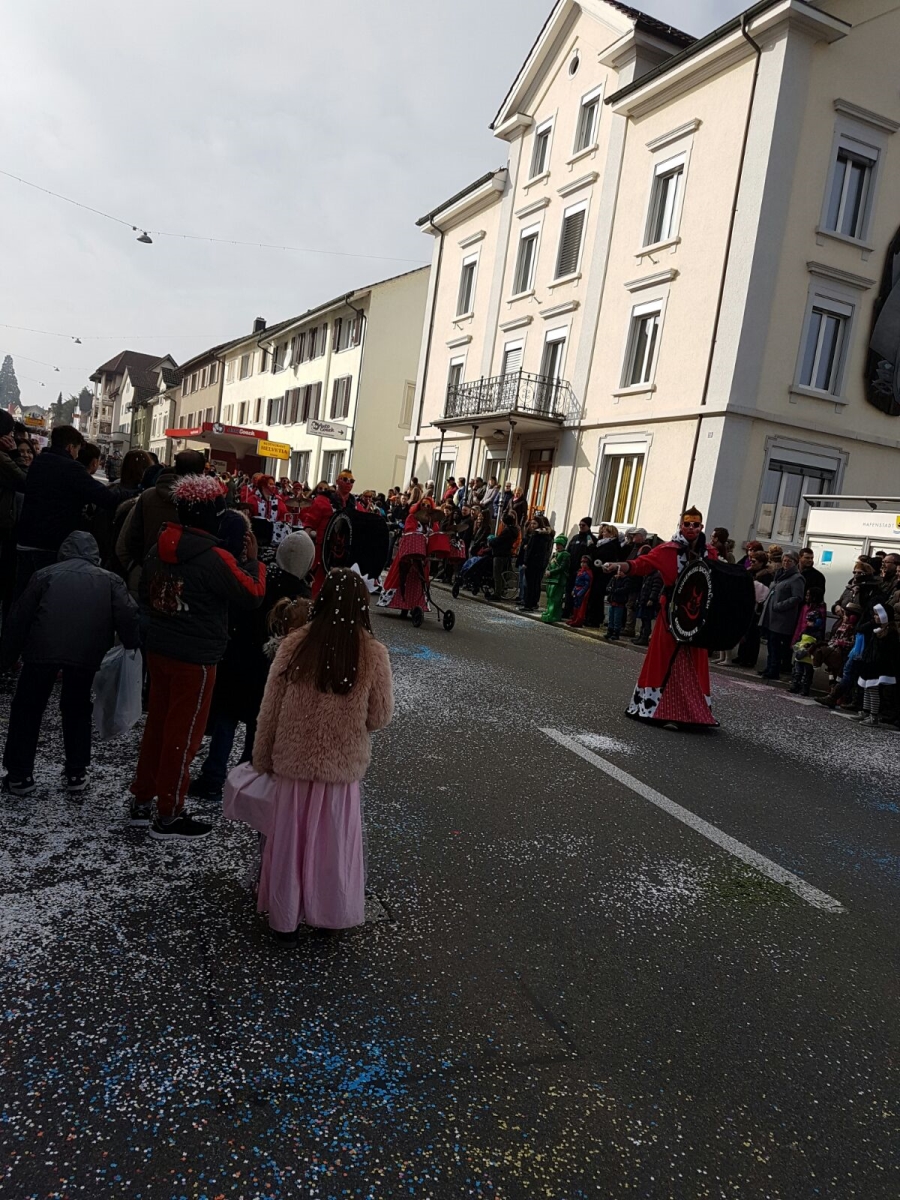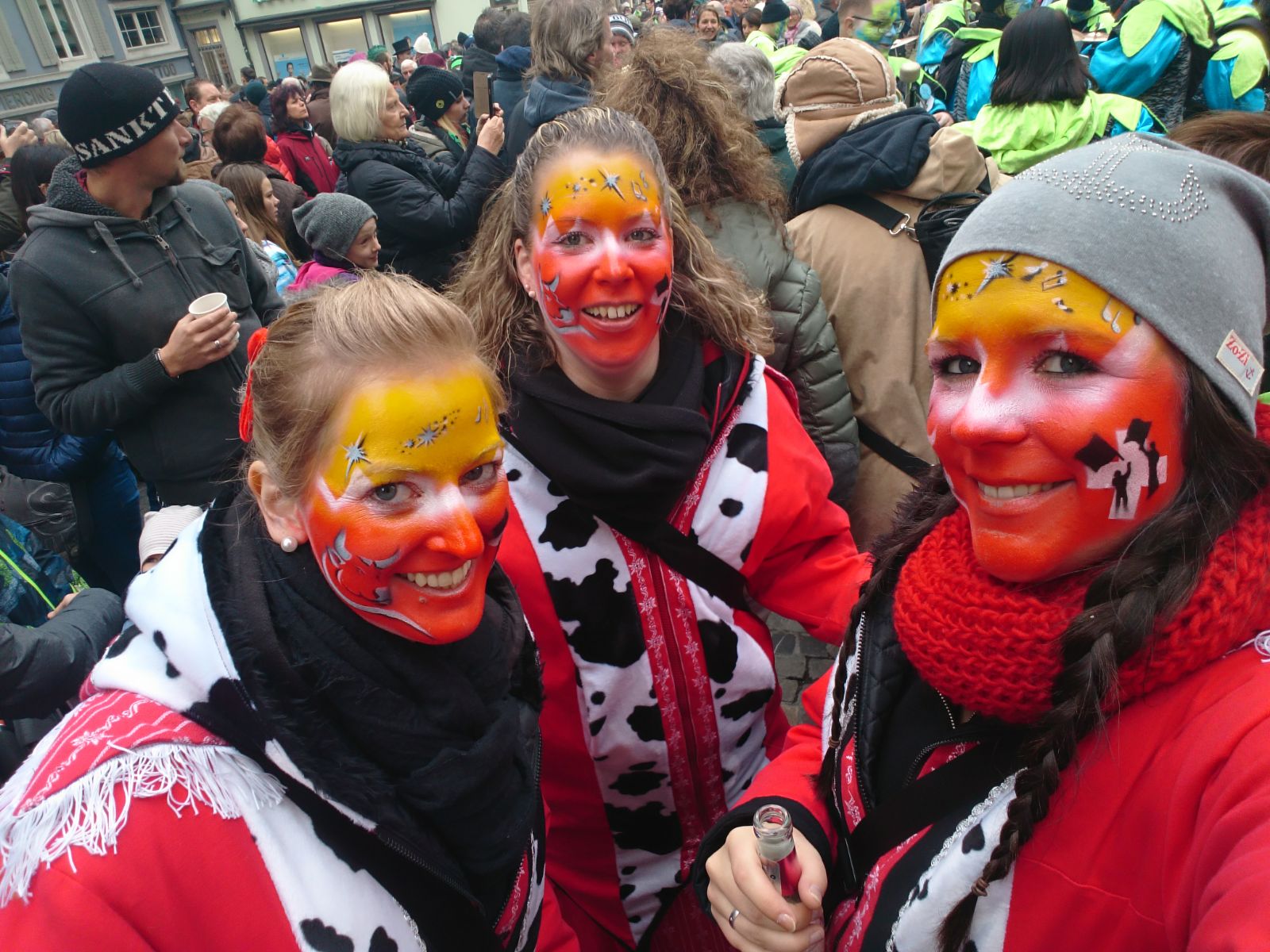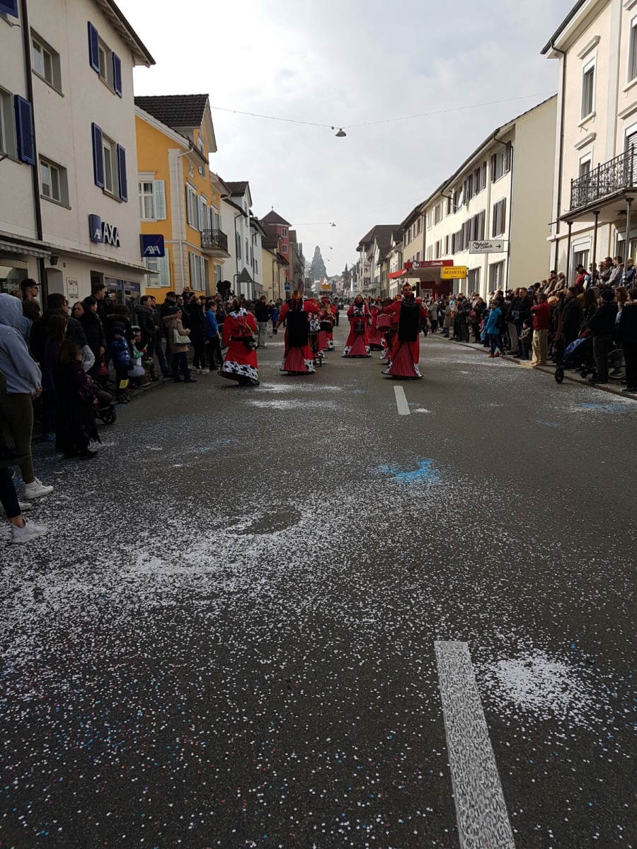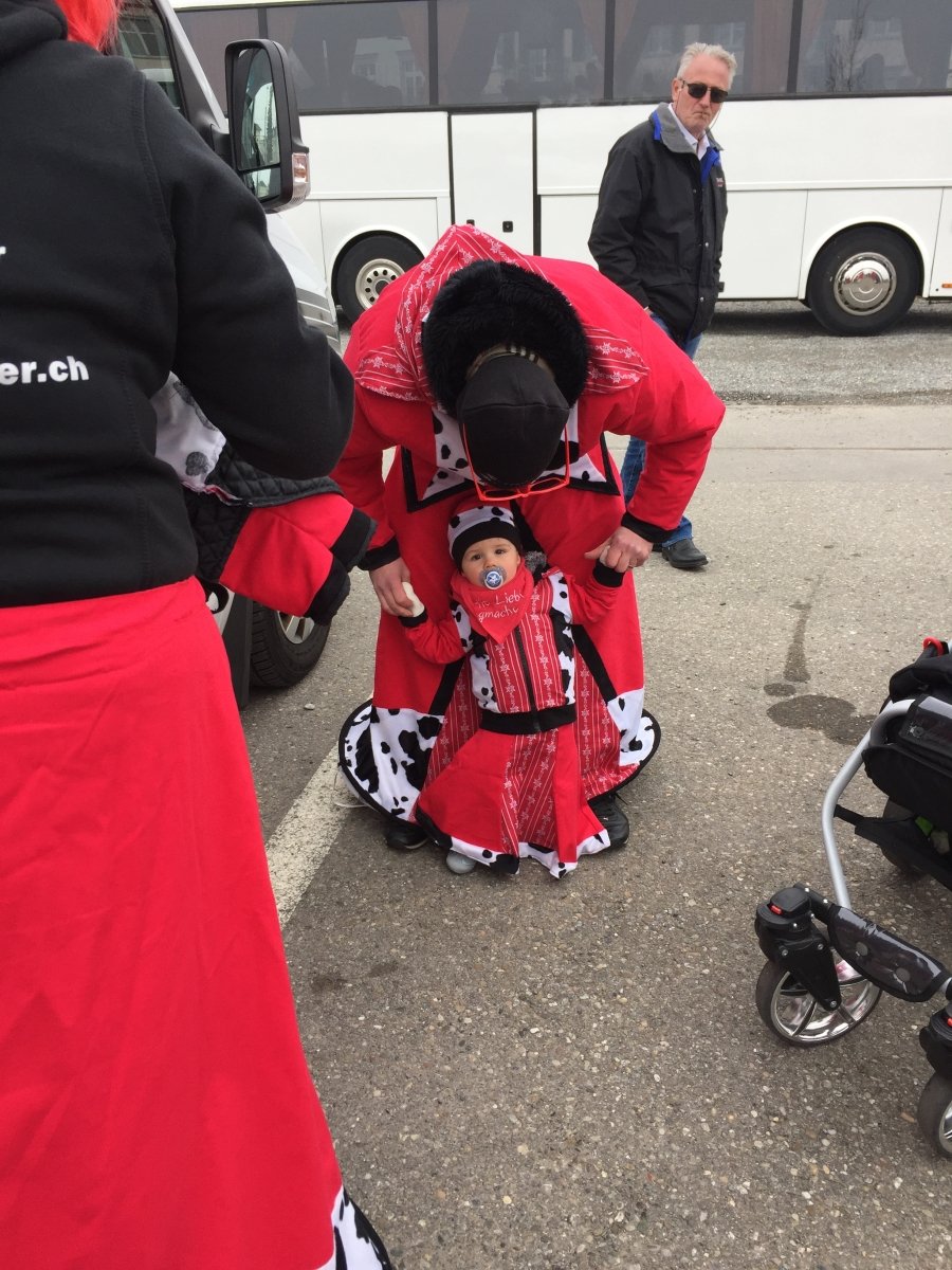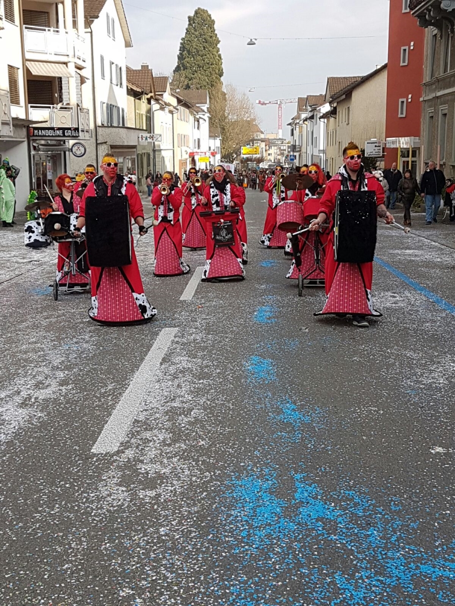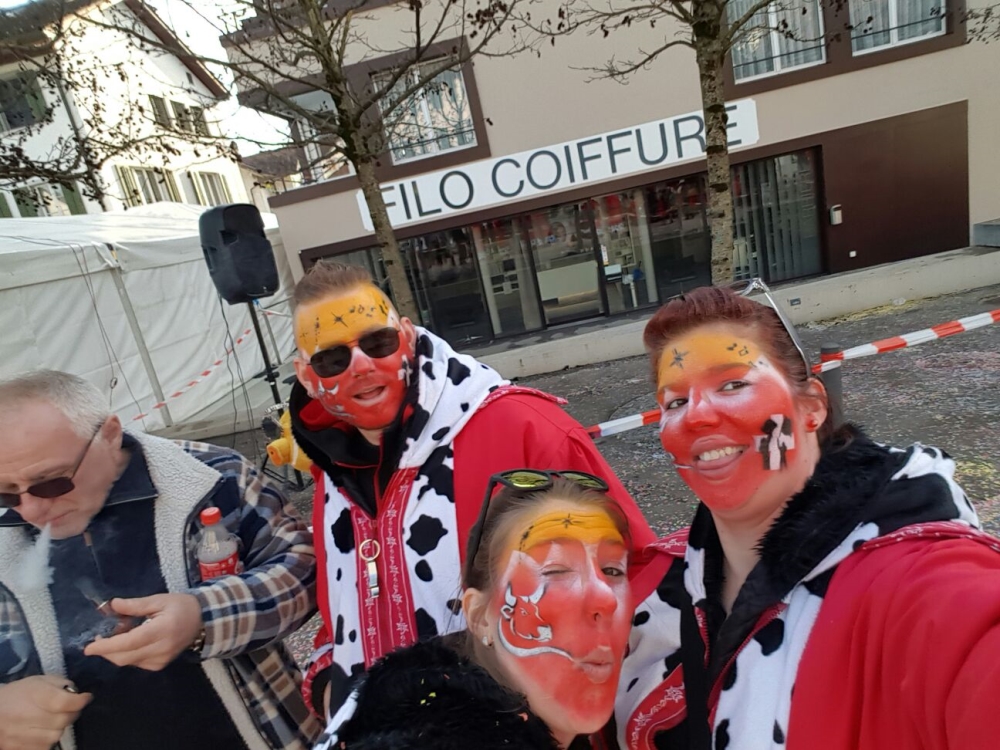 Nachere churze Nacht häts am Sunntig zum glück wieder Schminki is Gsicht gäh und dänn isch äs uf Robehuuse gange, wo mer bi traumhaftem Wätter uf dä Umzugsstart gwarted händ. Für euse chlini Huufe isch dä Umzug recht streng gsi, aber das super Wätter und dä viele Zueschauer wo freud gha händ, händ dä Sunntig zumene richtig coole Tag gmacht.