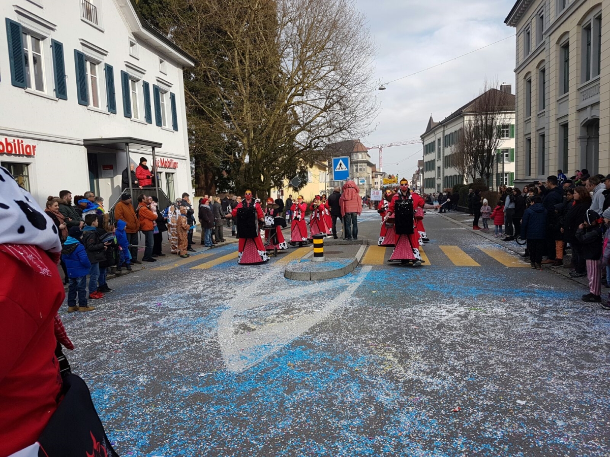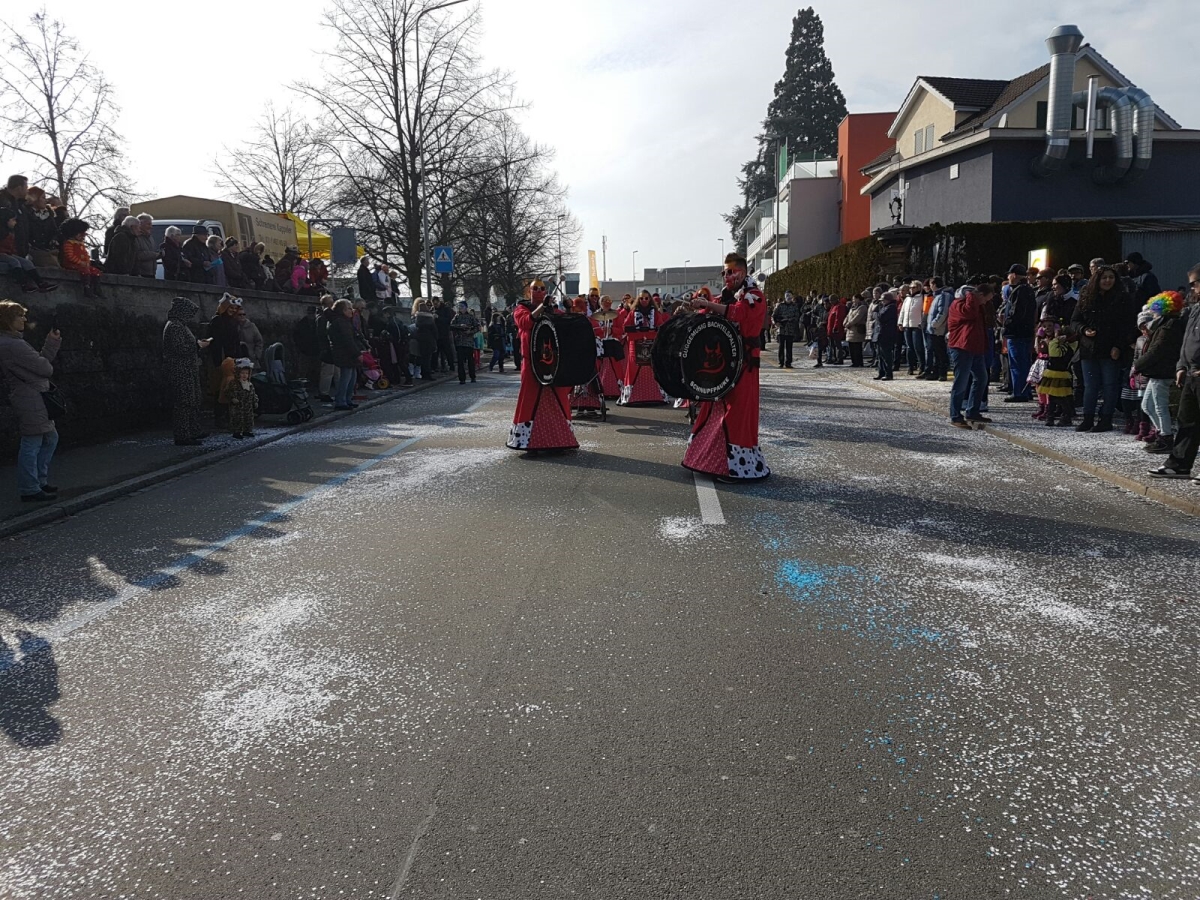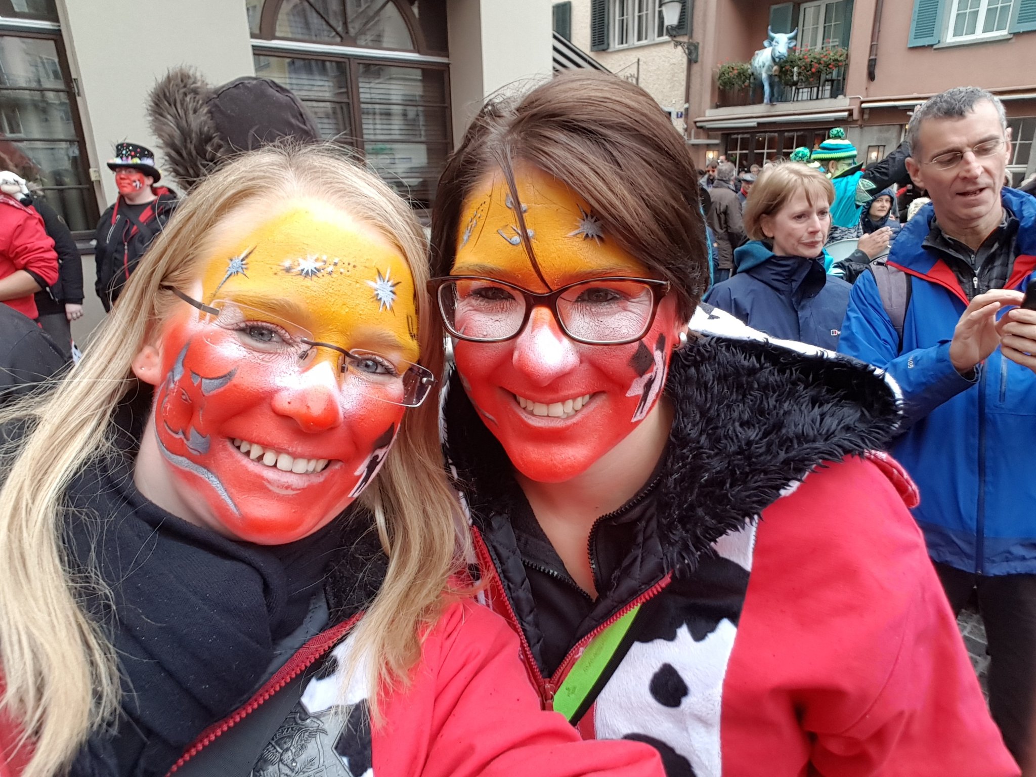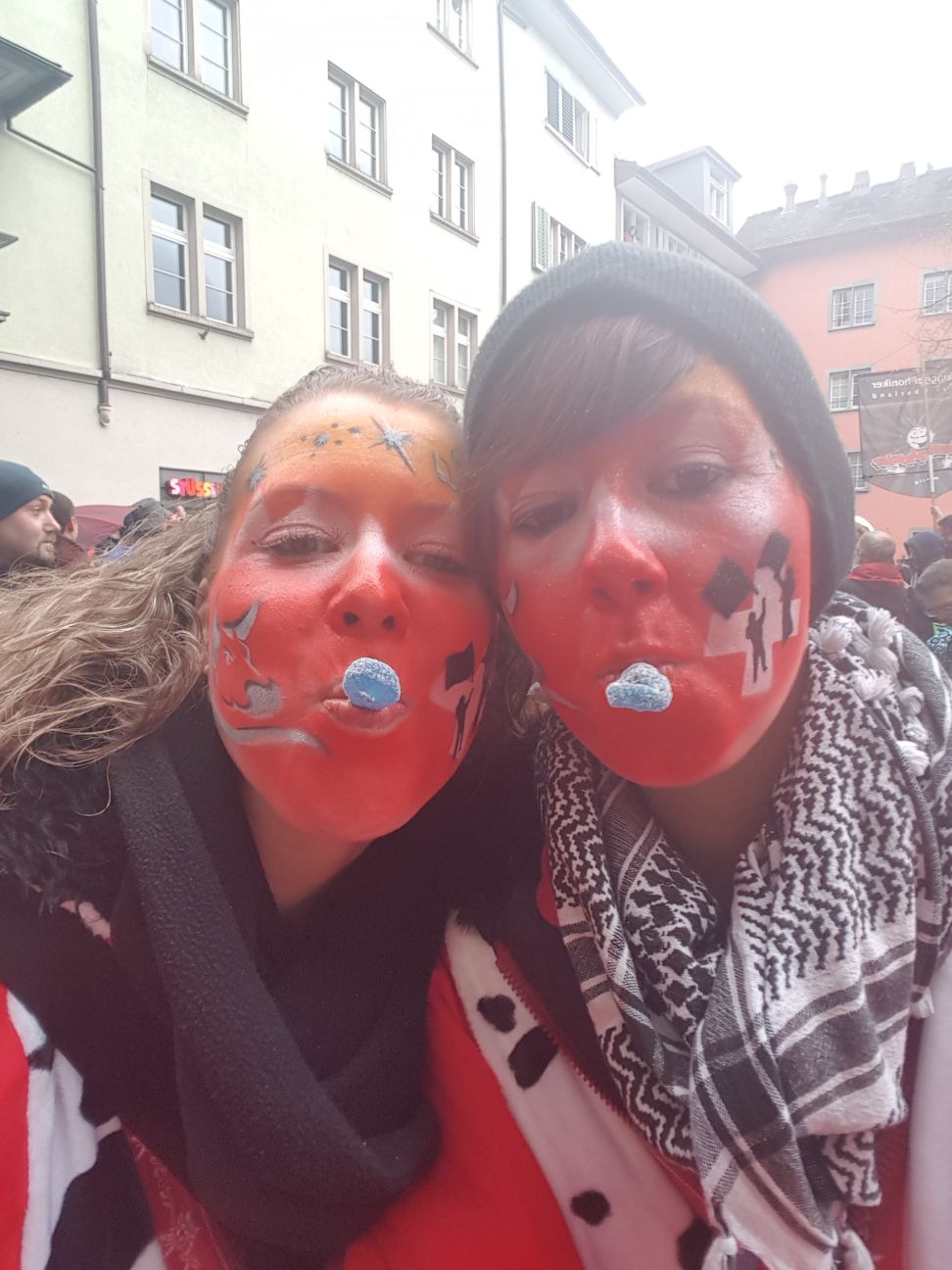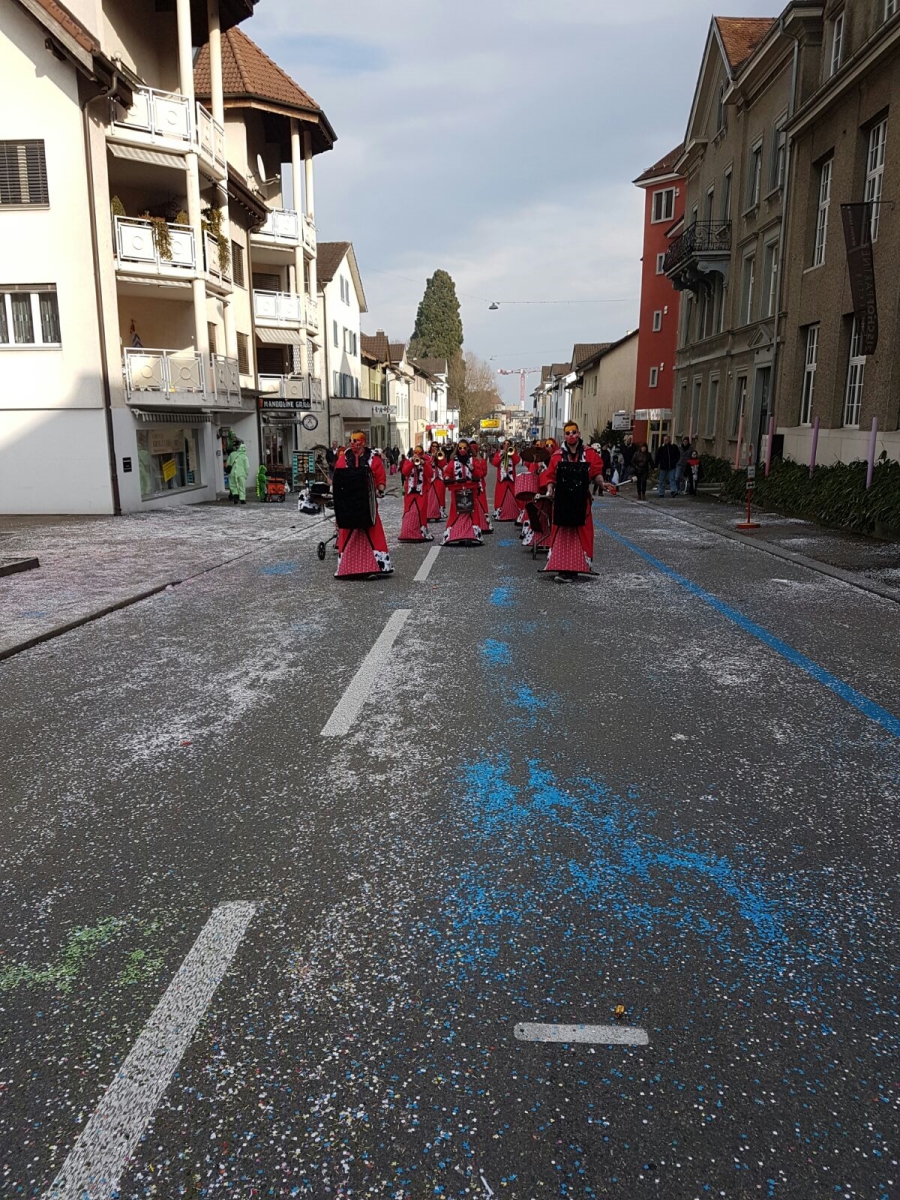 Nachere churze Nacht häts am Sunntig zum glück wieder Schminki is Gsicht gäh und dänn isch äs uf Robehuuse gange, wo mer bi traumhaftem Wätter uf dä Umzugsstart gwarted händ. Für euse chlini Huufe isch dä Umzug recht streng gsi, aber das super Wätter und dä viele Zueschauer wo freud gha händ, händ dä Sunntig zumene richtig coole Tag gmacht.