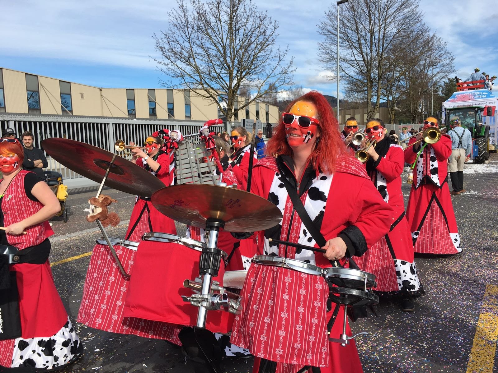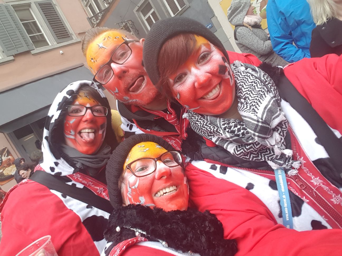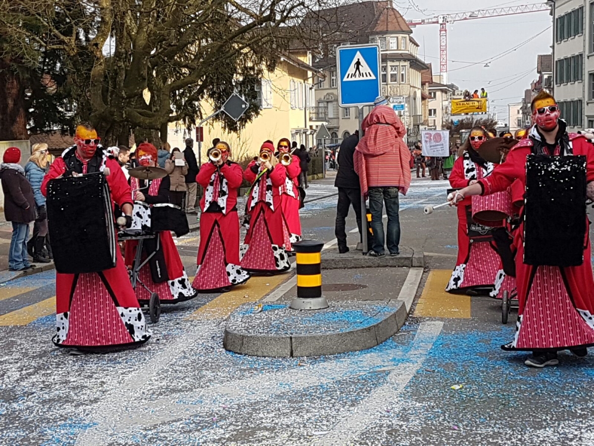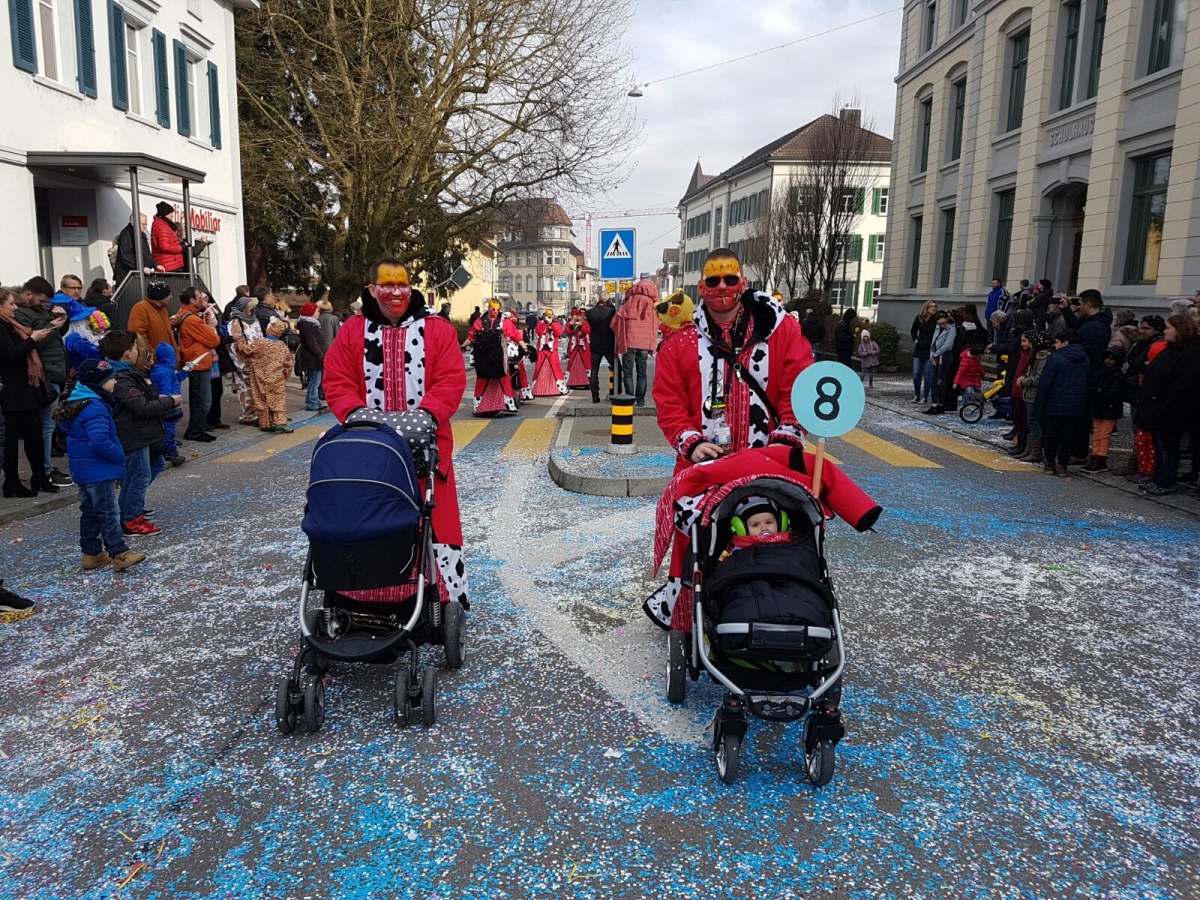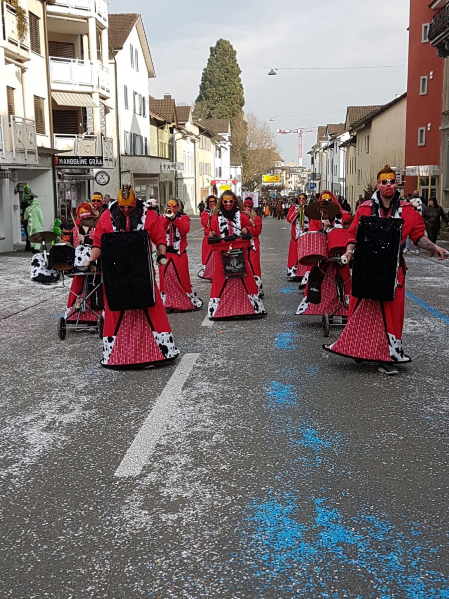 Nachere churze Nacht häts am Sunntig zum glück wieder Schminki is Gsicht gäh und dänn isch äs uf Robehuuse gange, wo mer bi traumhaftem Wätter uf dä Umzugsstart gwarted händ. Für euse chlini Huufe isch dä Umzug recht streng gsi, aber das super Wätter und dä viele Zueschauer wo freud gha händ, händ dä Sunntig zumene richtig coole Tag gmacht.