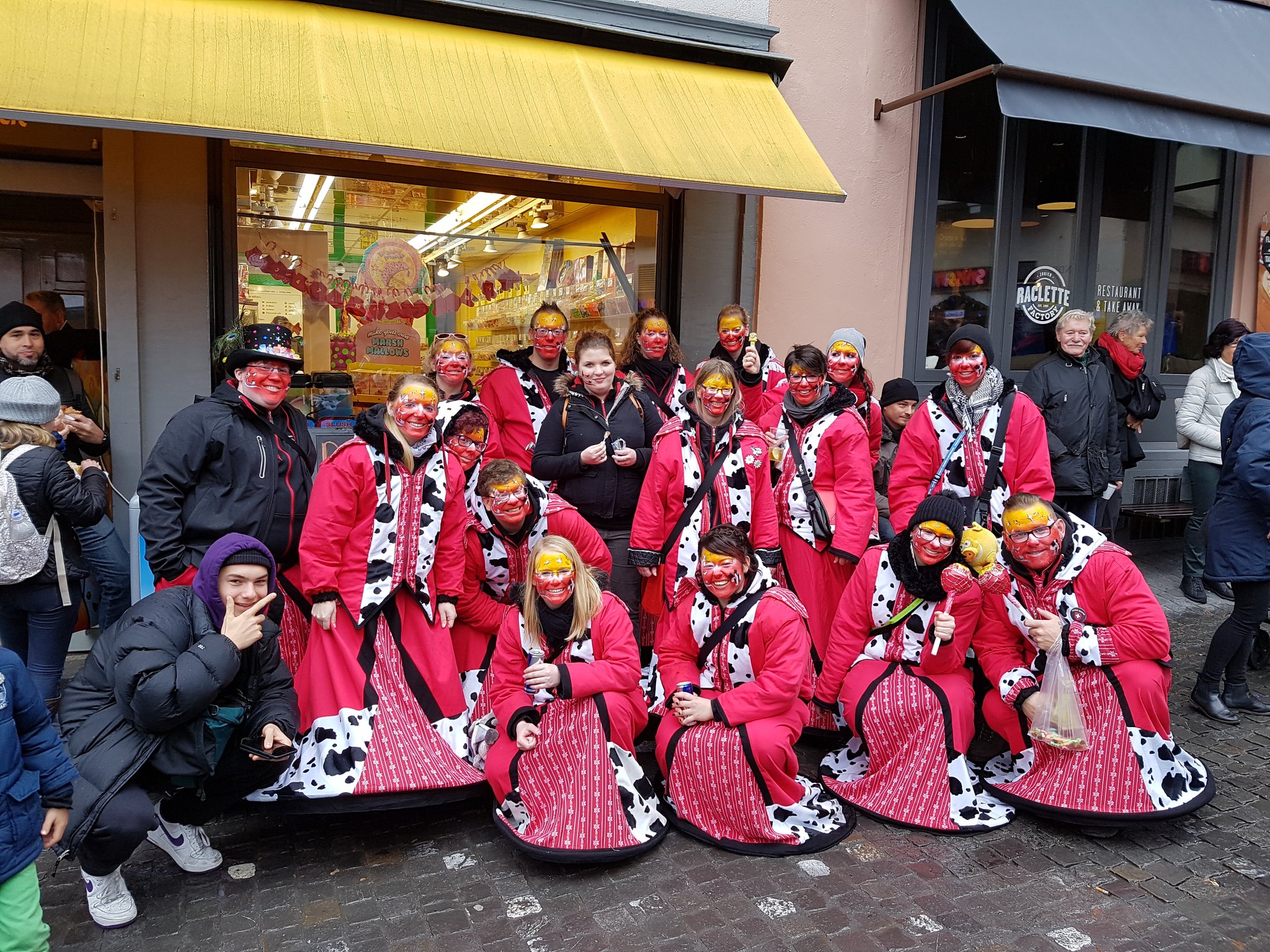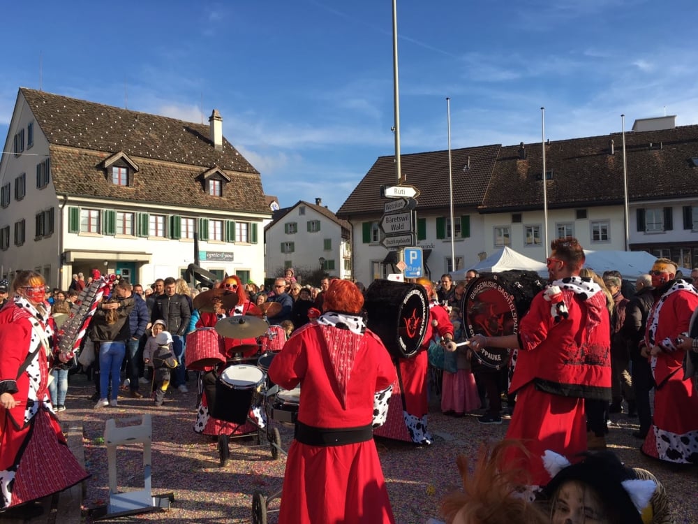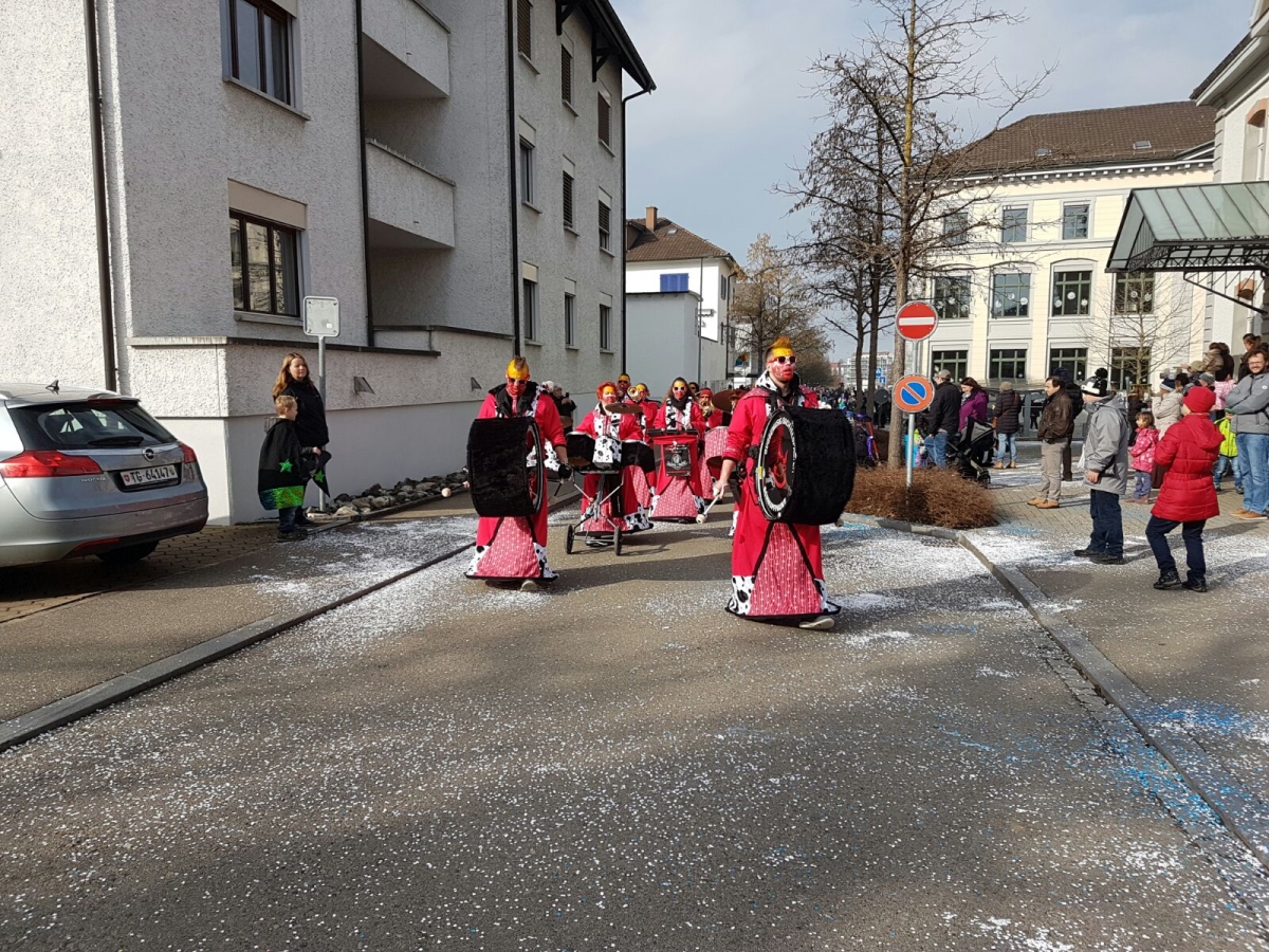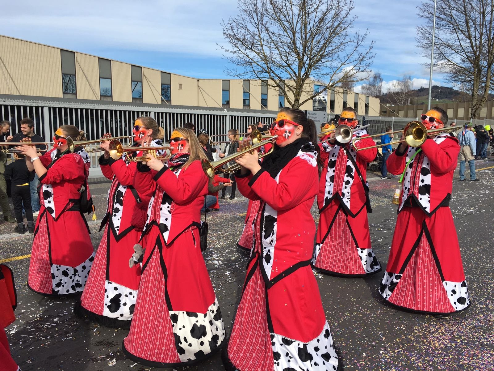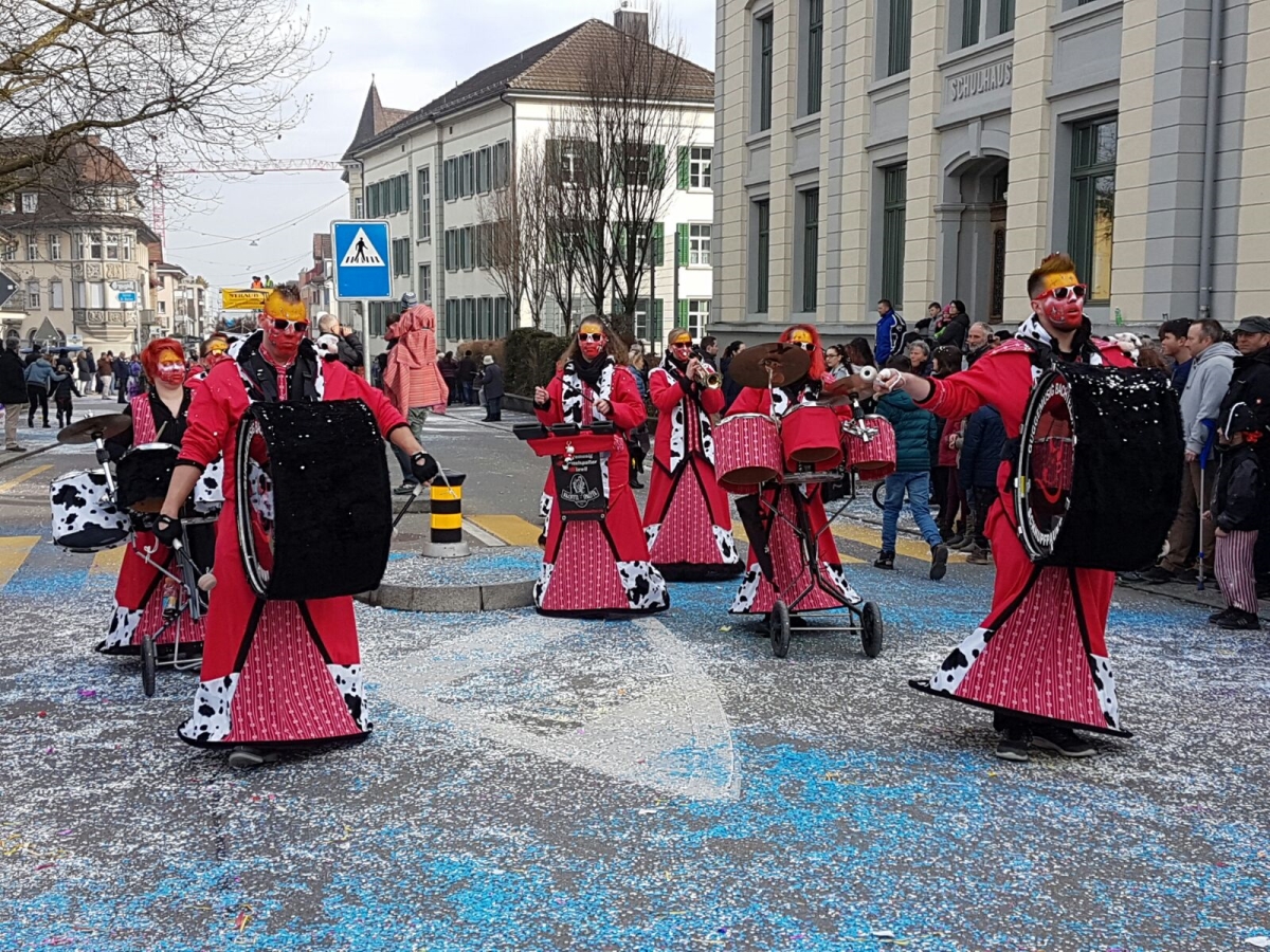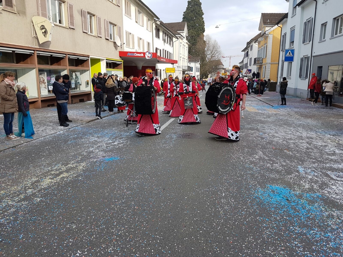 Nachere churze Nacht häts am Sunntig zum glück wieder Schminki is Gsicht gäh und dänn isch äs uf Robehuuse gange, wo mer bi traumhaftem Wätter uf dä Umzugsstart gwarted händ. Für euse chlini Huufe isch dä Umzug recht streng gsi, aber das super Wätter und dä viele Zueschauer wo freud gha händ, händ dä Sunntig zumene richtig coole Tag gmacht.