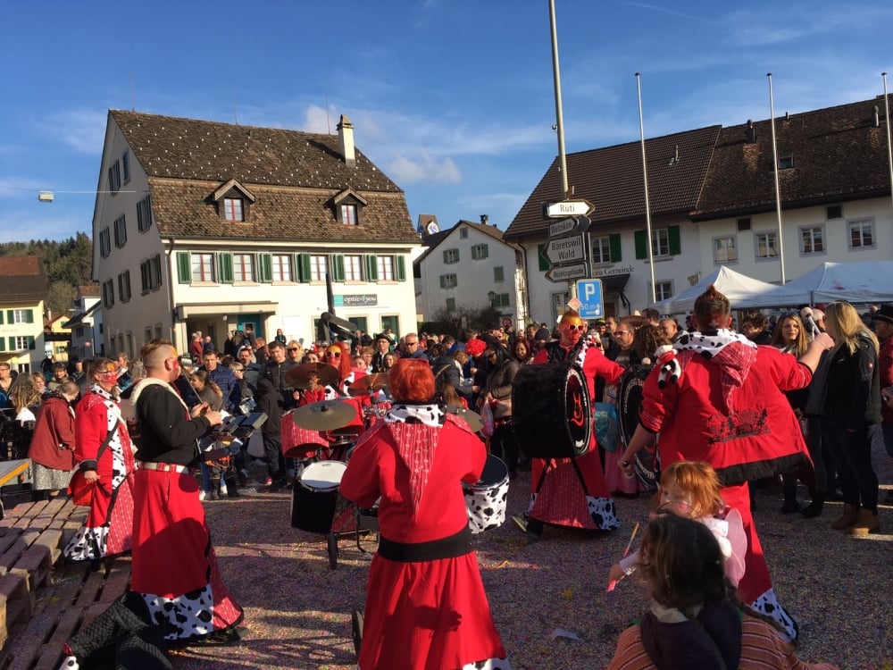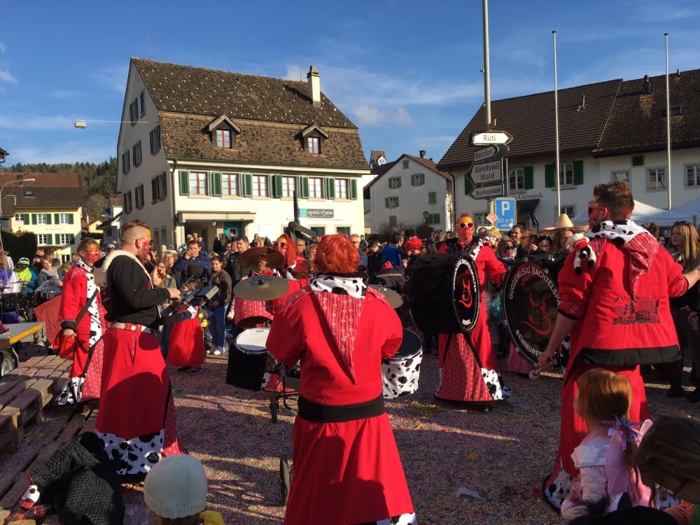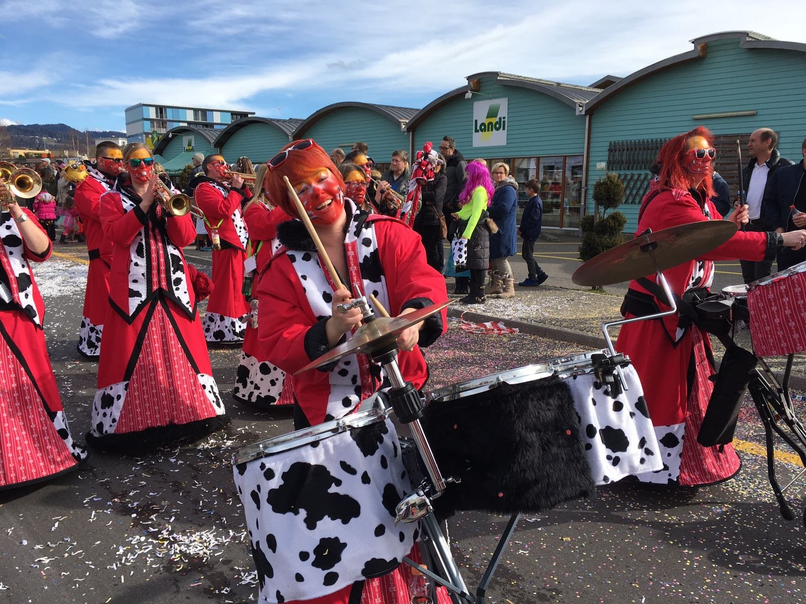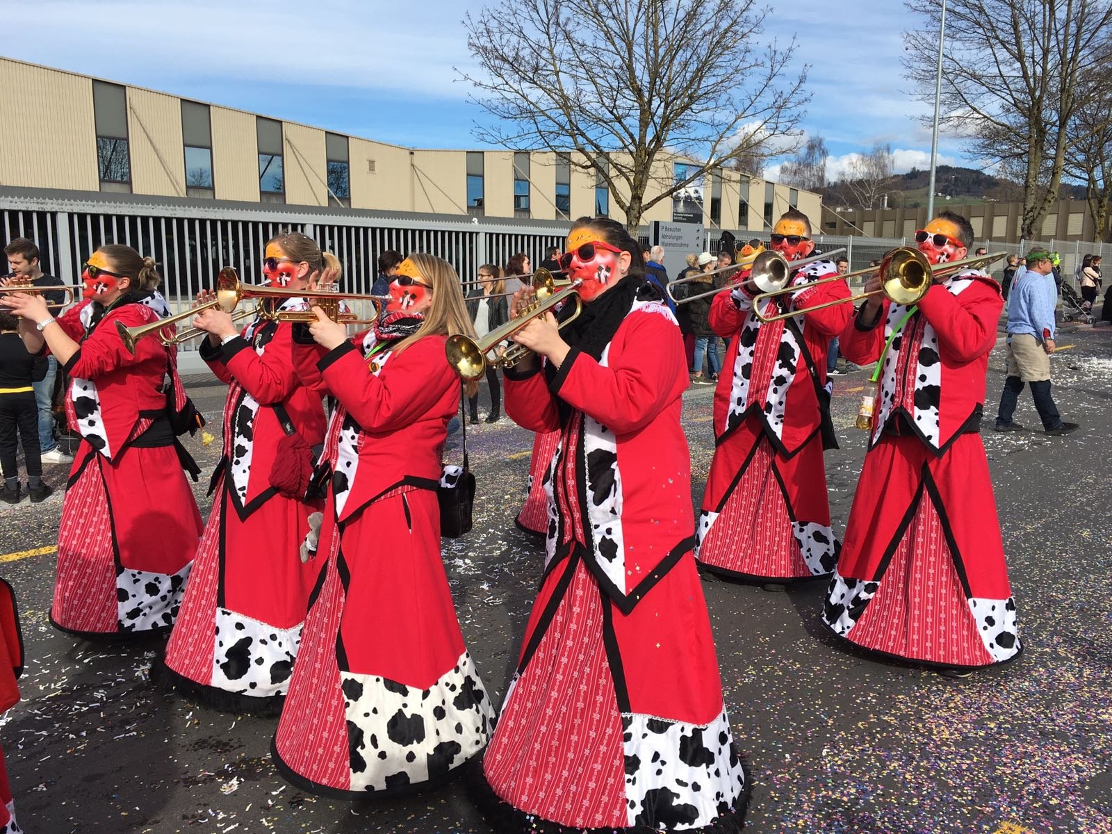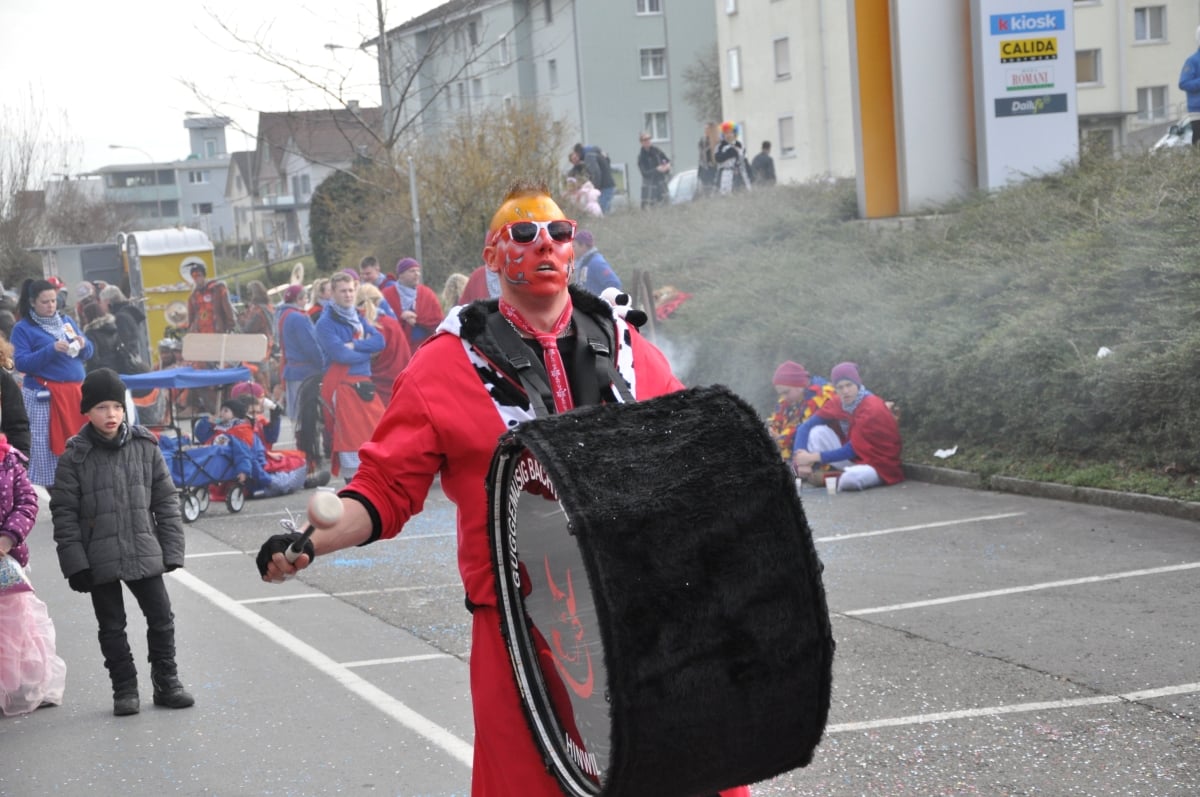 Nachere churze Nacht häts am Sunntig zum glück wieder Schminki is Gsicht gäh und dänn isch äs uf Robehuuse gange, wo mer bi traumhaftem Wätter uf dä Umzugsstart gwarted händ. Für euse chlini Huufe isch dä Umzug recht streng gsi, aber das super Wätter und dä viele Zueschauer wo freud gha händ, händ dä Sunntig zumene richtig coole Tag gmacht.