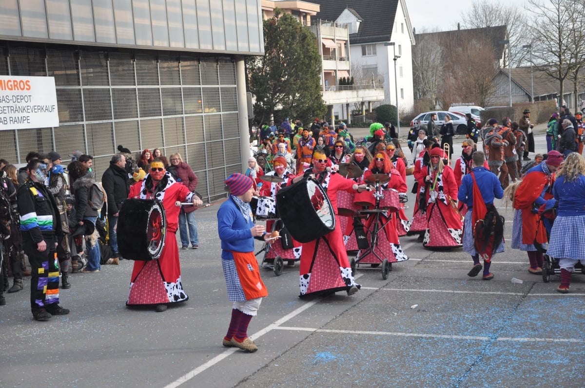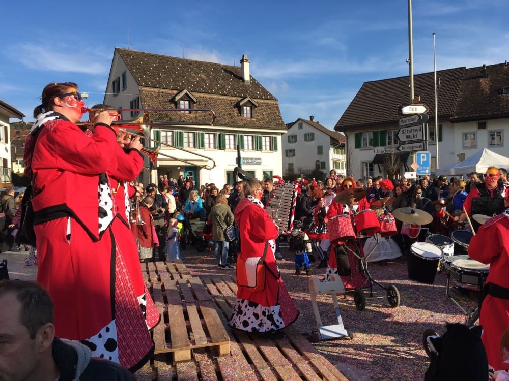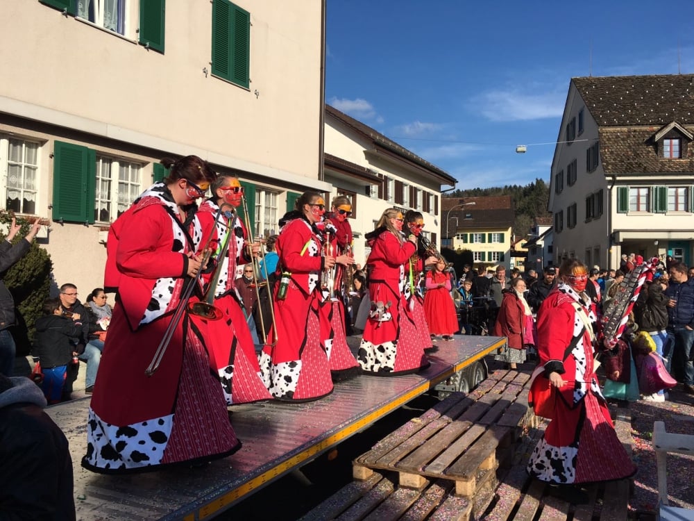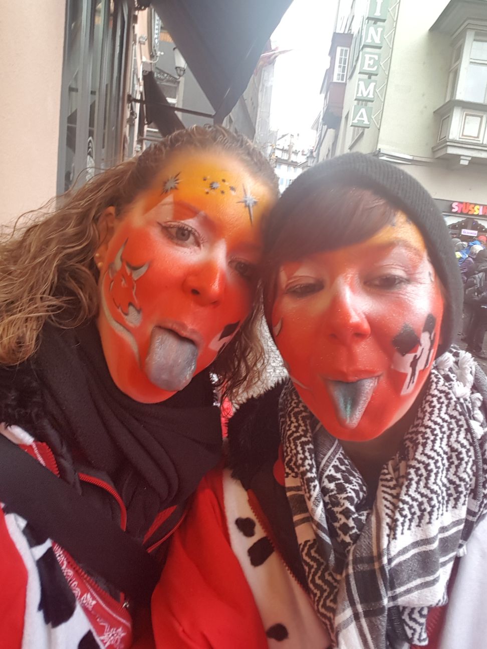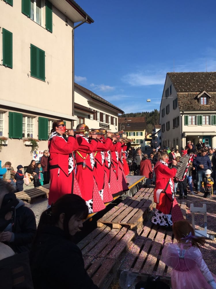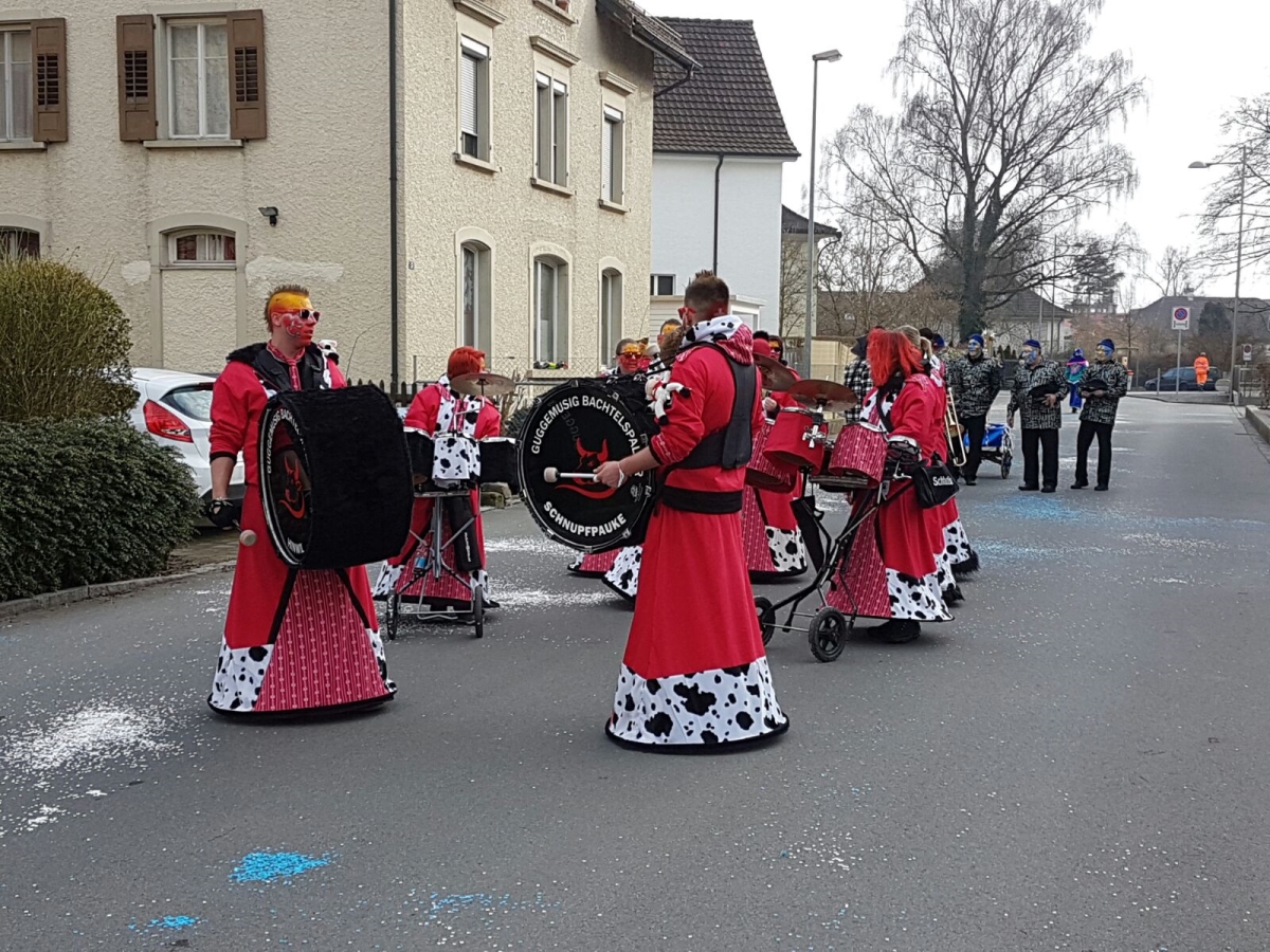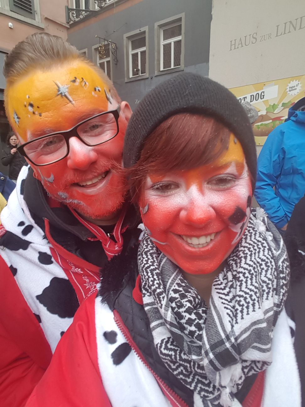 Nachere churze Nacht häts am Sunntig zum glück wieder Schminki is Gsicht gäh und dänn isch äs uf Robehuuse gange, wo mer bi traumhaftem Wätter uf dä Umzugsstart gwarted händ. Für euse chlini Huufe isch dä Umzug recht streng gsi, aber das super Wätter und dä viele Zueschauer wo freud gha händ, händ dä Sunntig zumene richtig coole Tag gmacht.