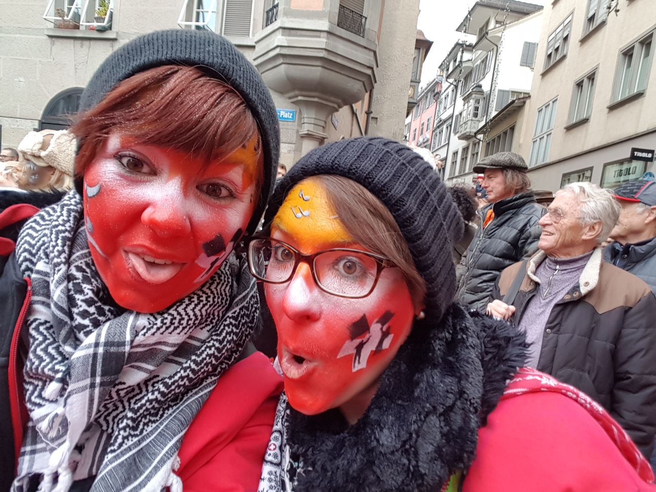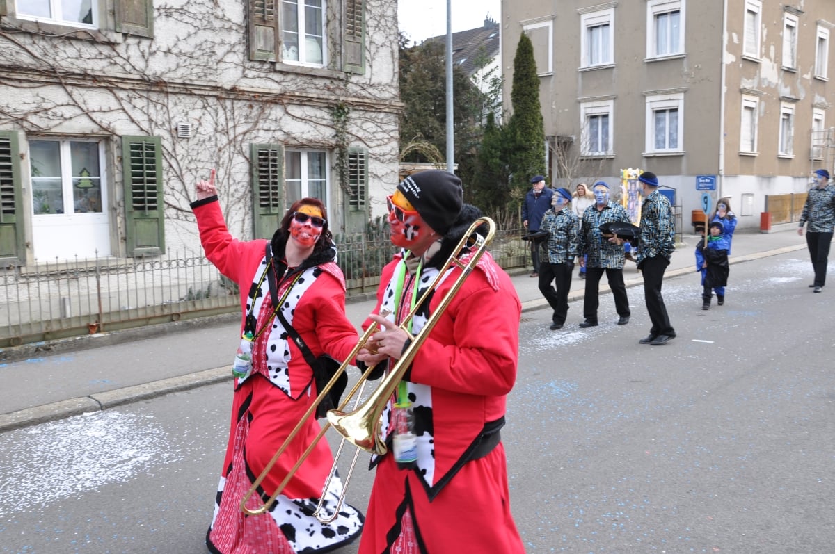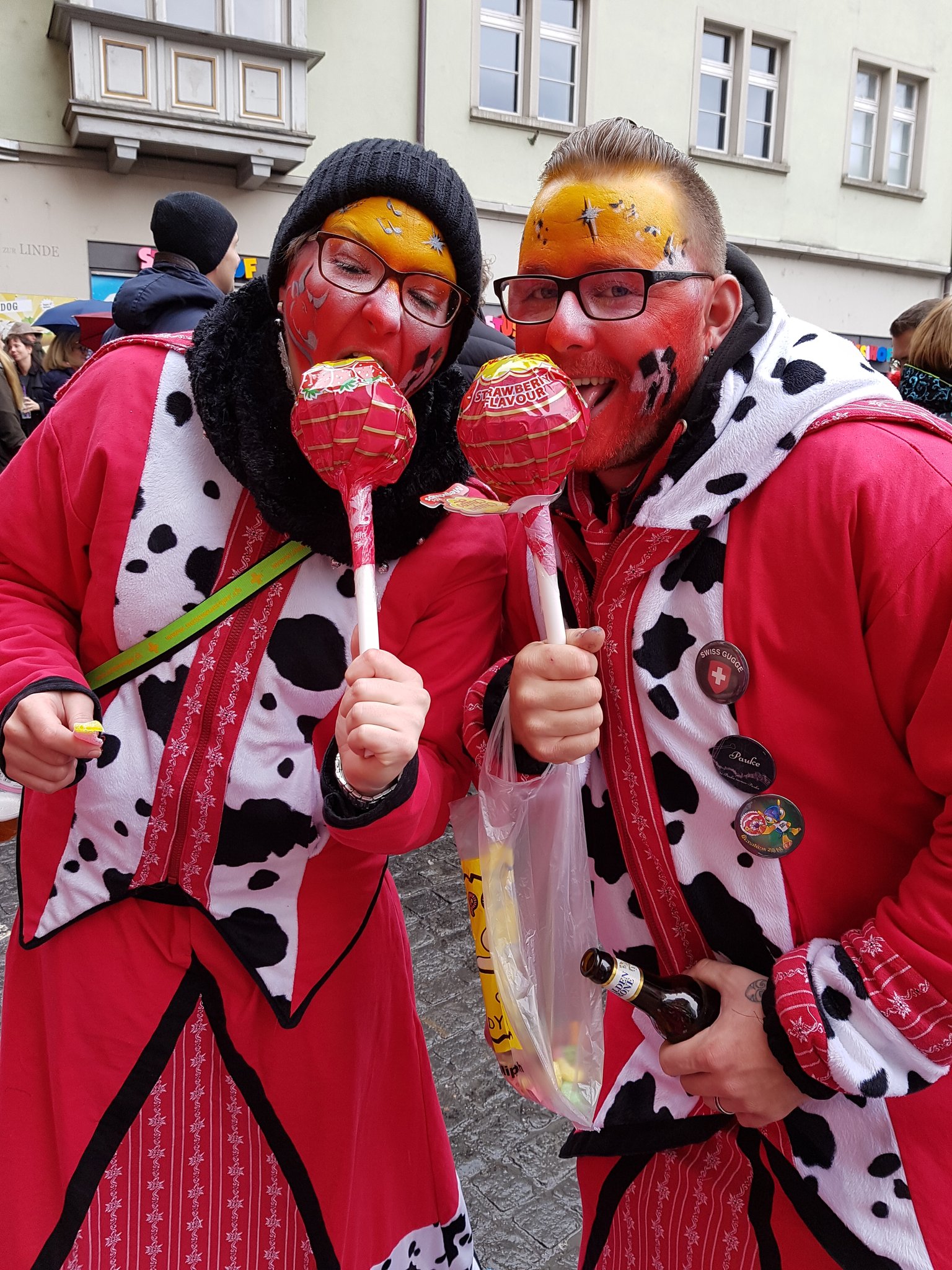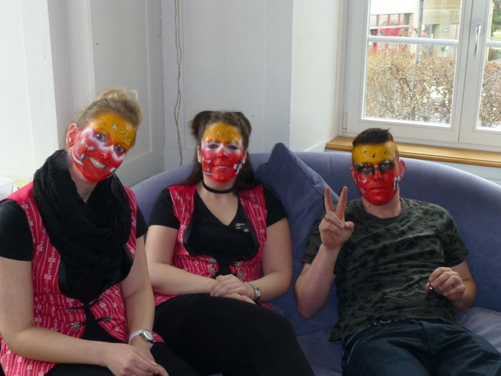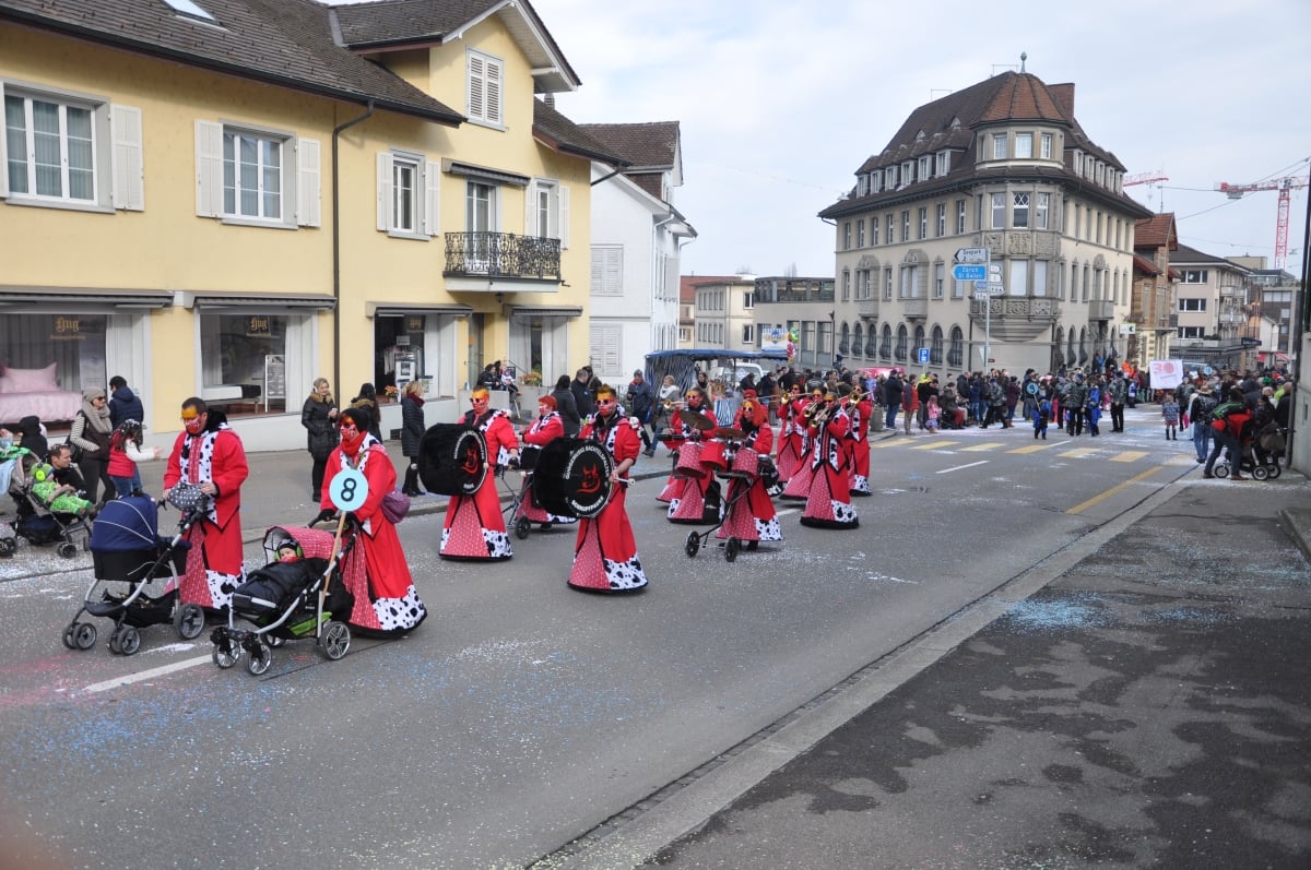 Nachere churze Nacht häts am Sunntig zum glück wieder Schminki is Gsicht gäh und dänn isch äs uf Robehuuse gange, wo mer bi traumhaftem Wätter uf dä Umzugsstart gwarted händ. Für euse chlini Huufe isch dä Umzug recht streng gsi, aber das super Wätter und dä viele Zueschauer wo freud gha händ, händ dä Sunntig zumene richtig coole Tag gmacht.