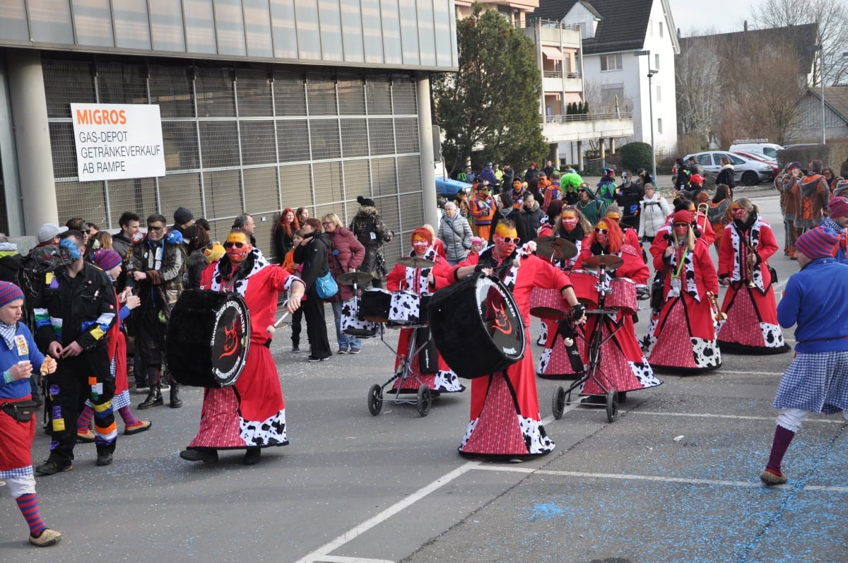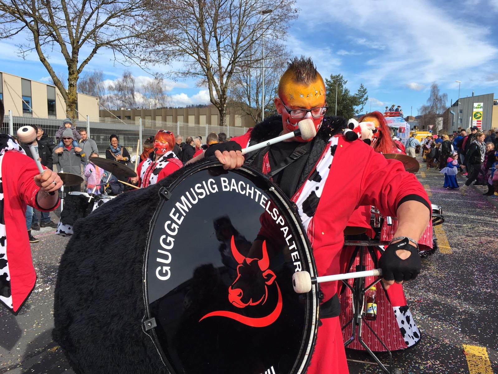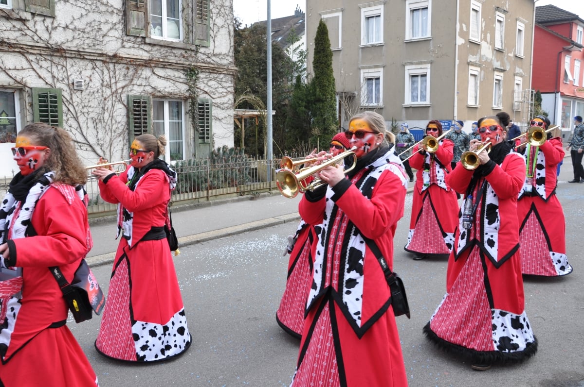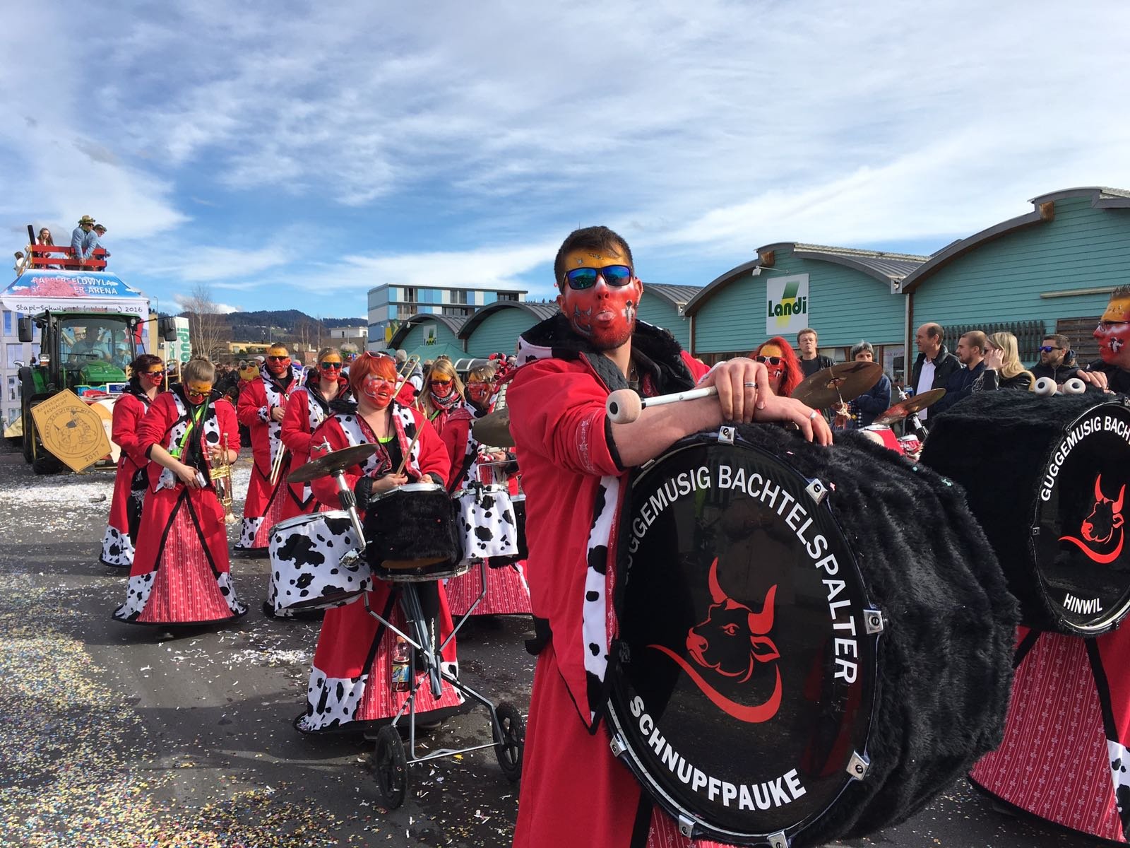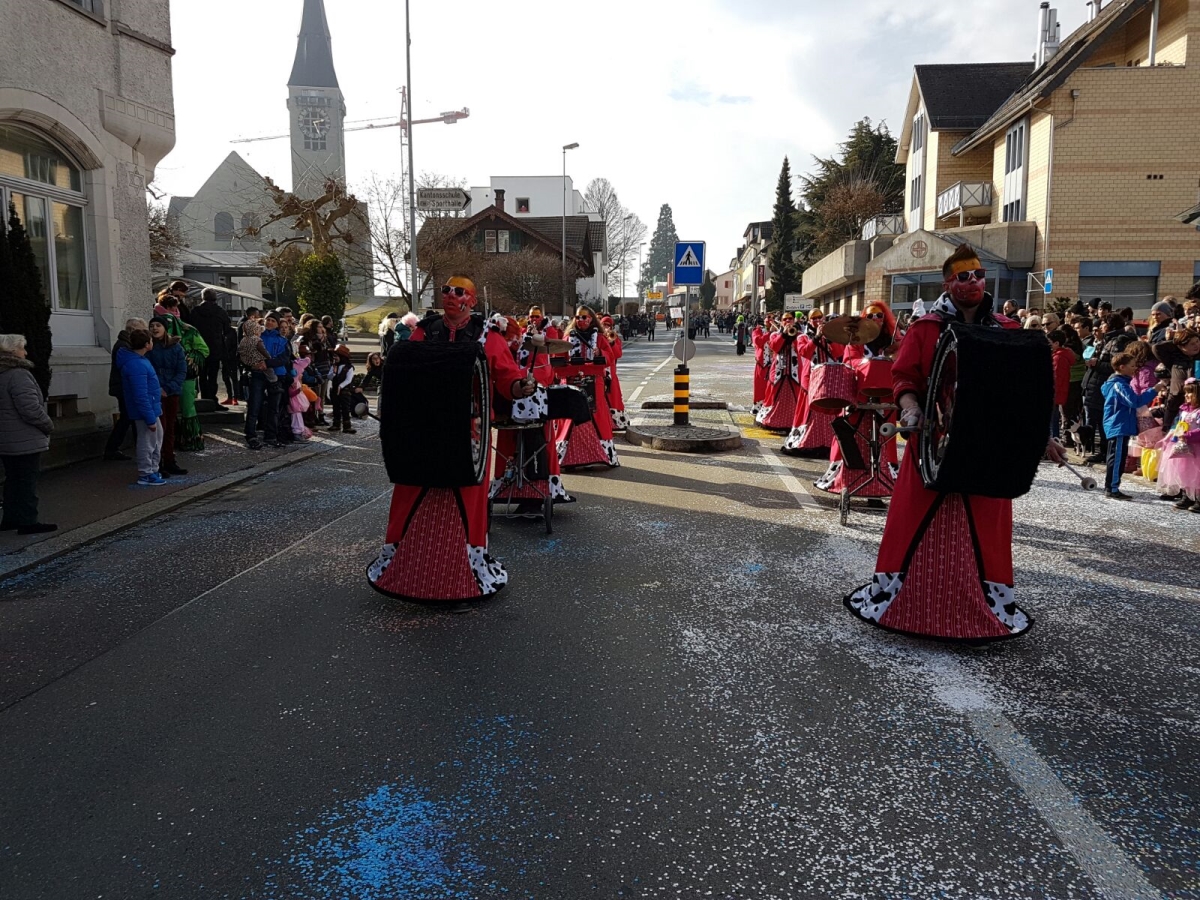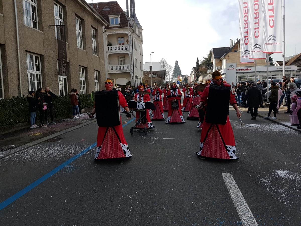 Nachere churze Nacht häts am Sunntig zum glück wieder Schminki is Gsicht gäh und dänn isch äs uf Robehuuse gange, wo mer bi traumhaftem Wätter uf dä Umzugsstart gwarted händ. Für euse chlini Huufe isch dä Umzug recht streng gsi, aber das super Wätter und dä viele Zueschauer wo freud gha händ, händ dä Sunntig zumene richtig coole Tag gmacht.