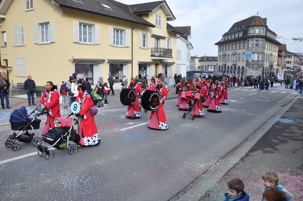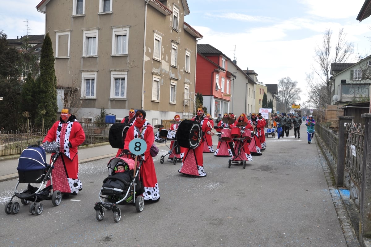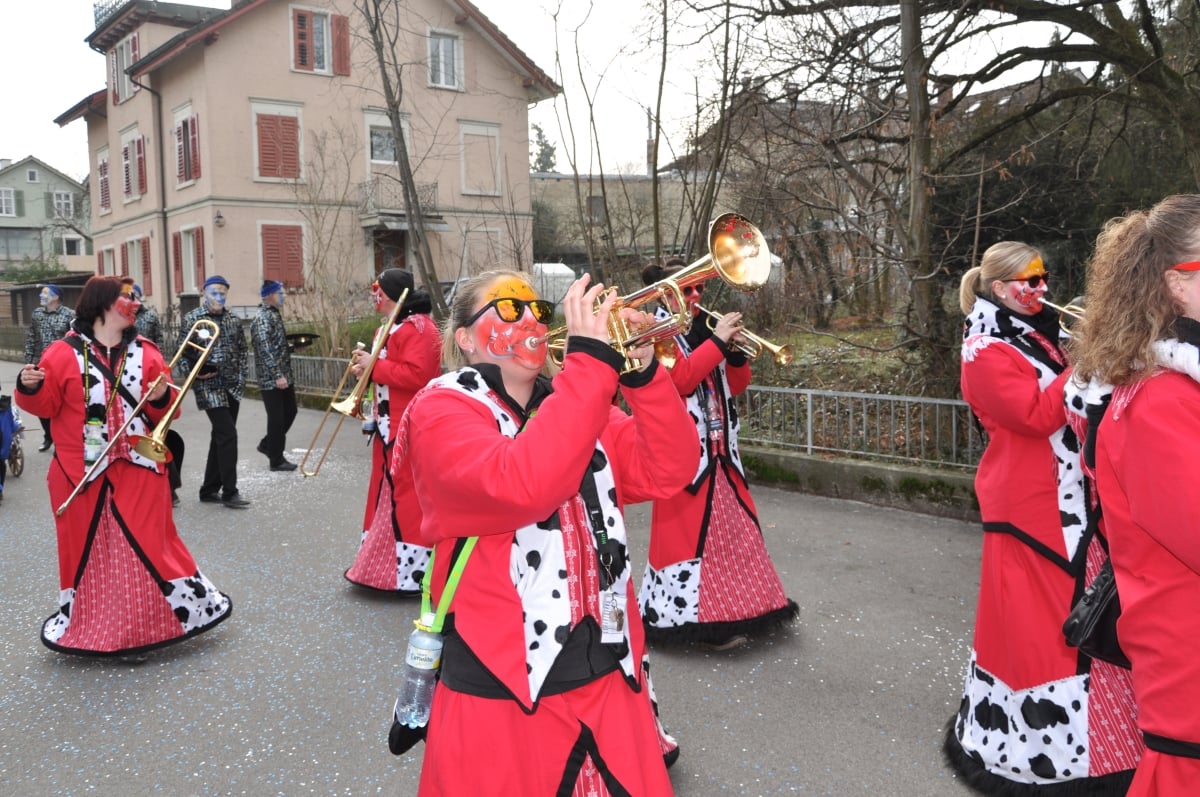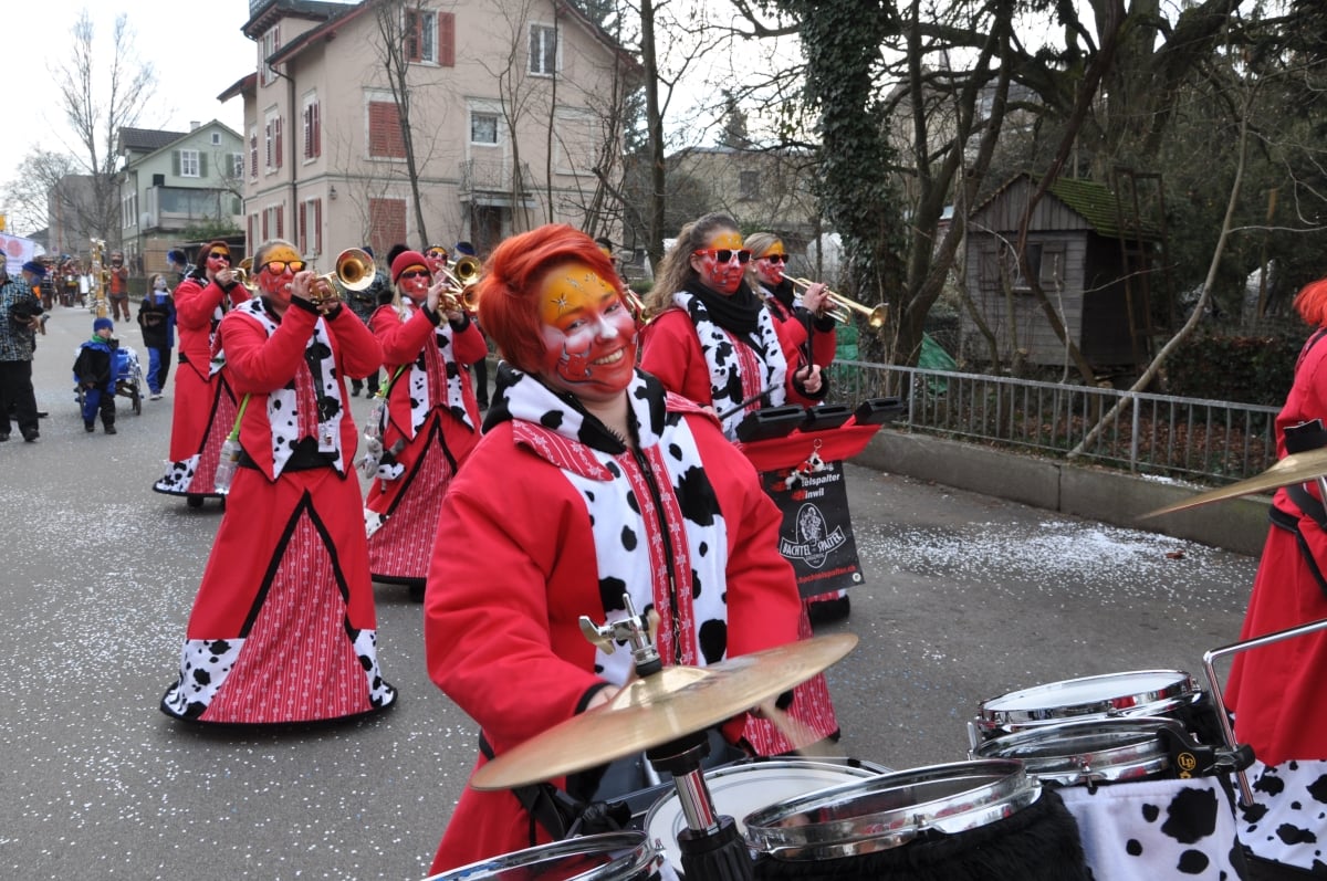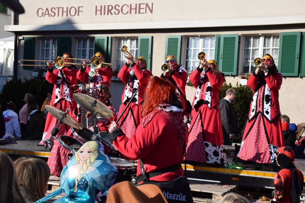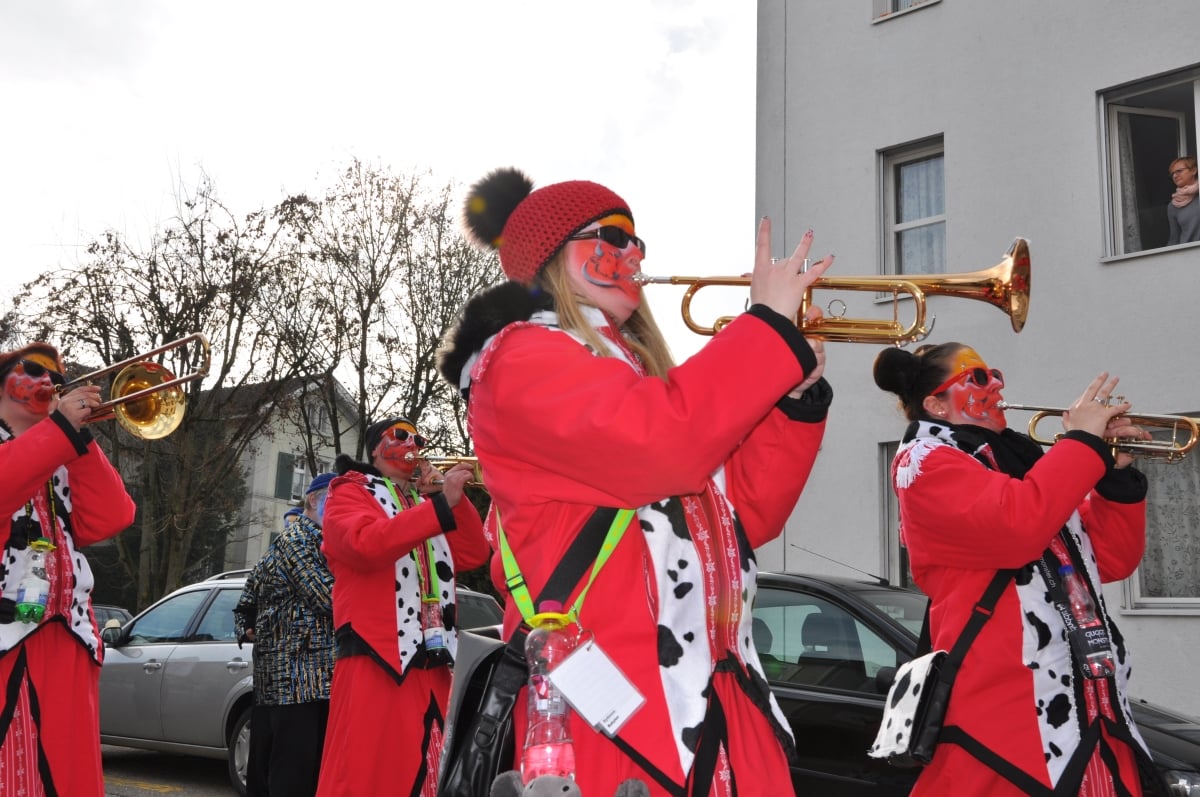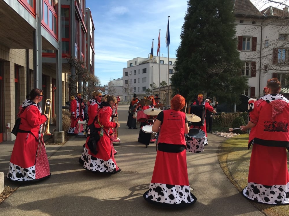 Nachere churze Nacht häts am Sunntig zum glück wieder Schminki is Gsicht gäh und dänn isch äs uf Robehuuse gange, wo mer bi traumhaftem Wätter uf dä Umzugsstart gwarted händ. Für euse chlini Huufe isch dä Umzug recht streng gsi, aber das super Wätter und dä viele Zueschauer wo freud gha händ, händ dä Sunntig zumene richtig coole Tag gmacht.