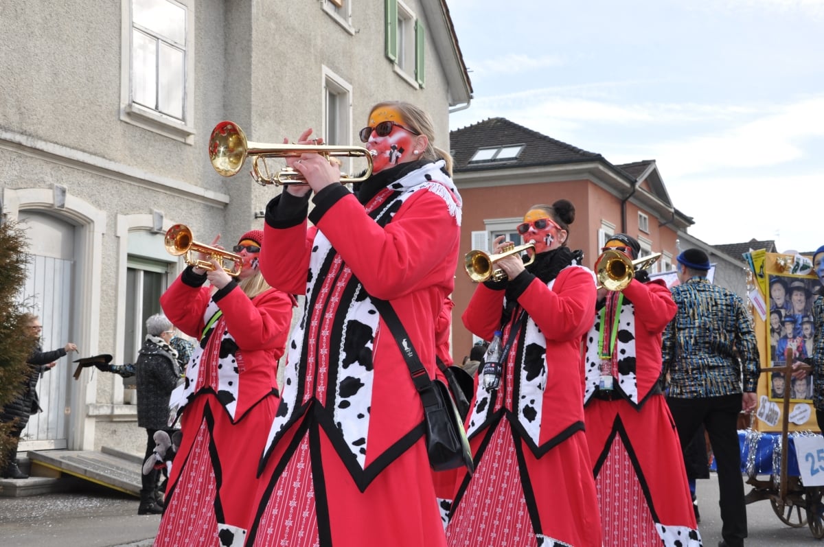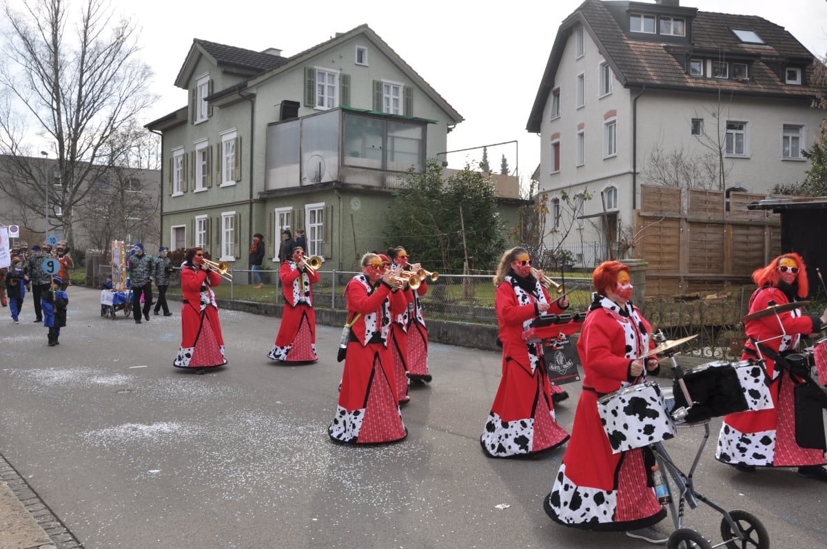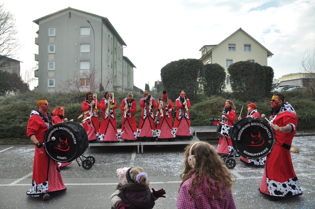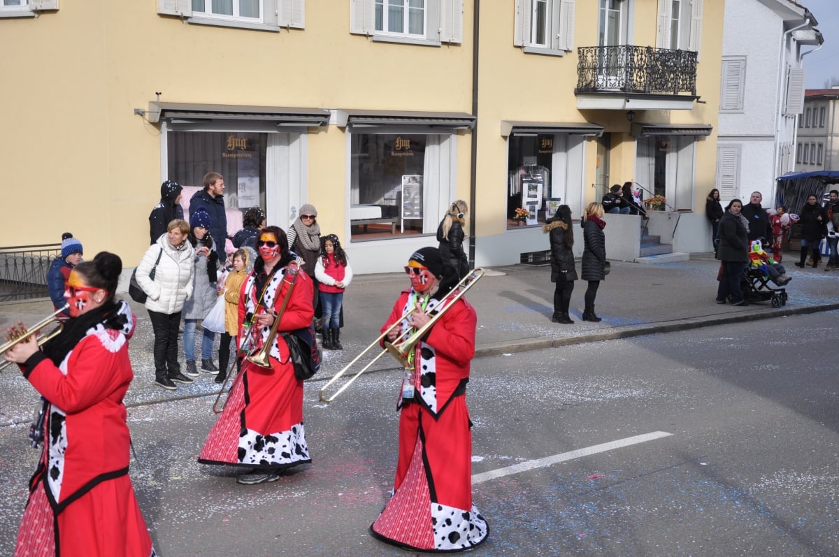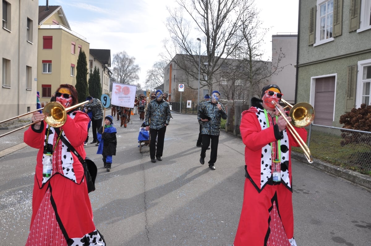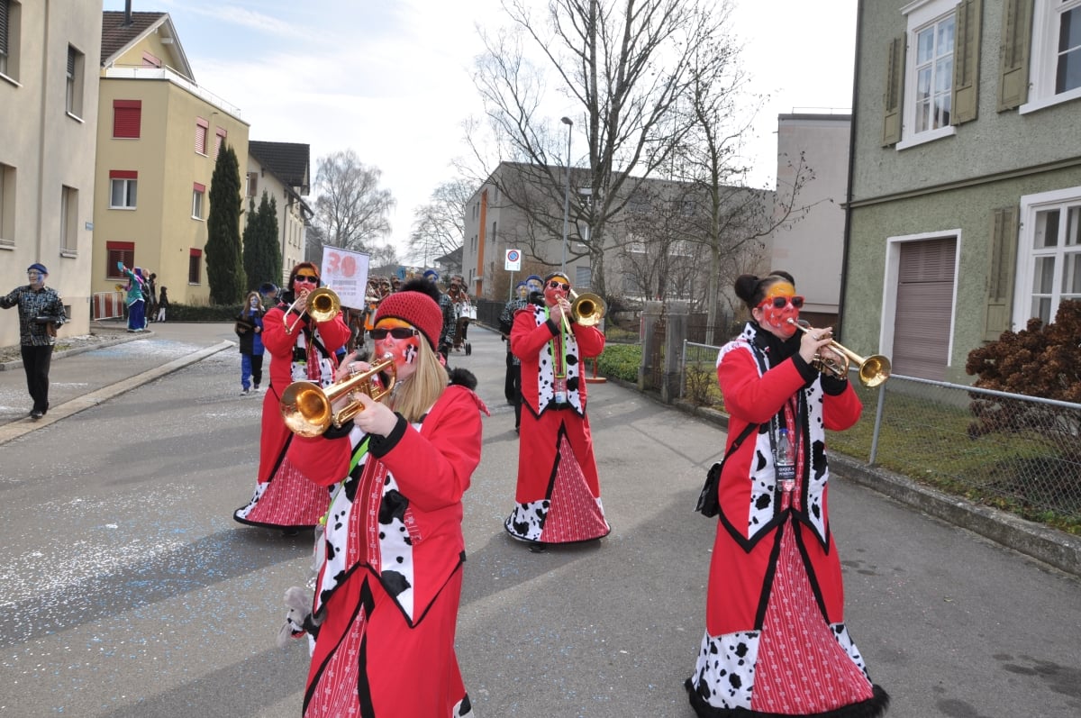 Nachere churze Nacht häts am Sunntig zum glück wieder Schminki is Gsicht gäh und dänn isch äs uf Robehuuse gange, wo mer bi traumhaftem Wätter uf dä Umzugsstart gwarted händ. Für euse chlini Huufe isch dä Umzug recht streng gsi, aber das super Wätter und dä viele Zueschauer wo freud gha händ, händ dä Sunntig zumene richtig coole Tag gmacht.