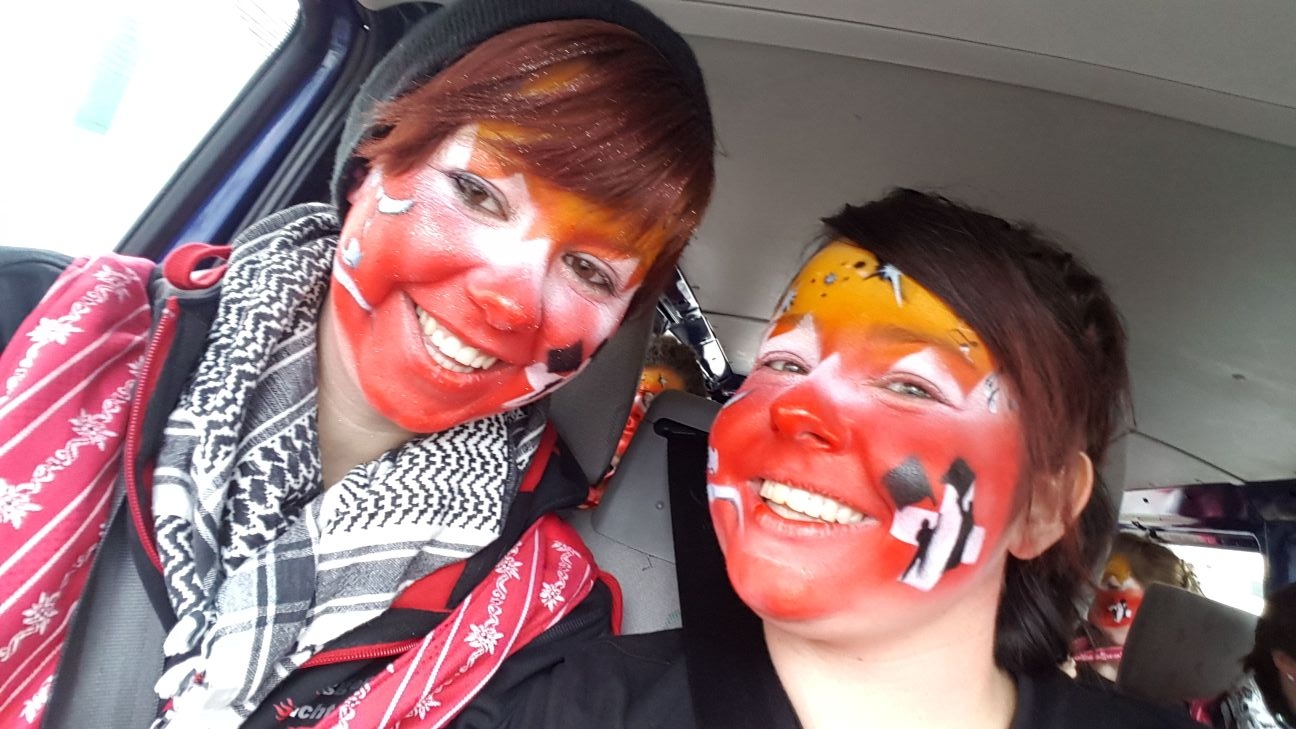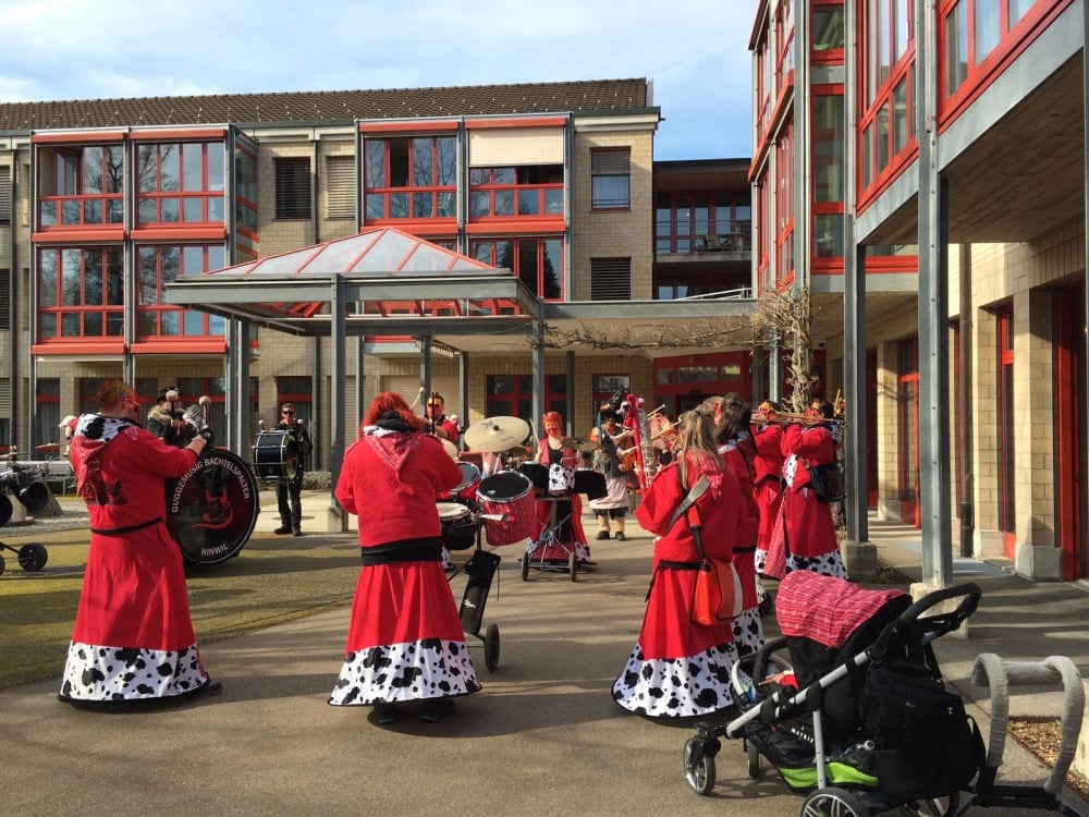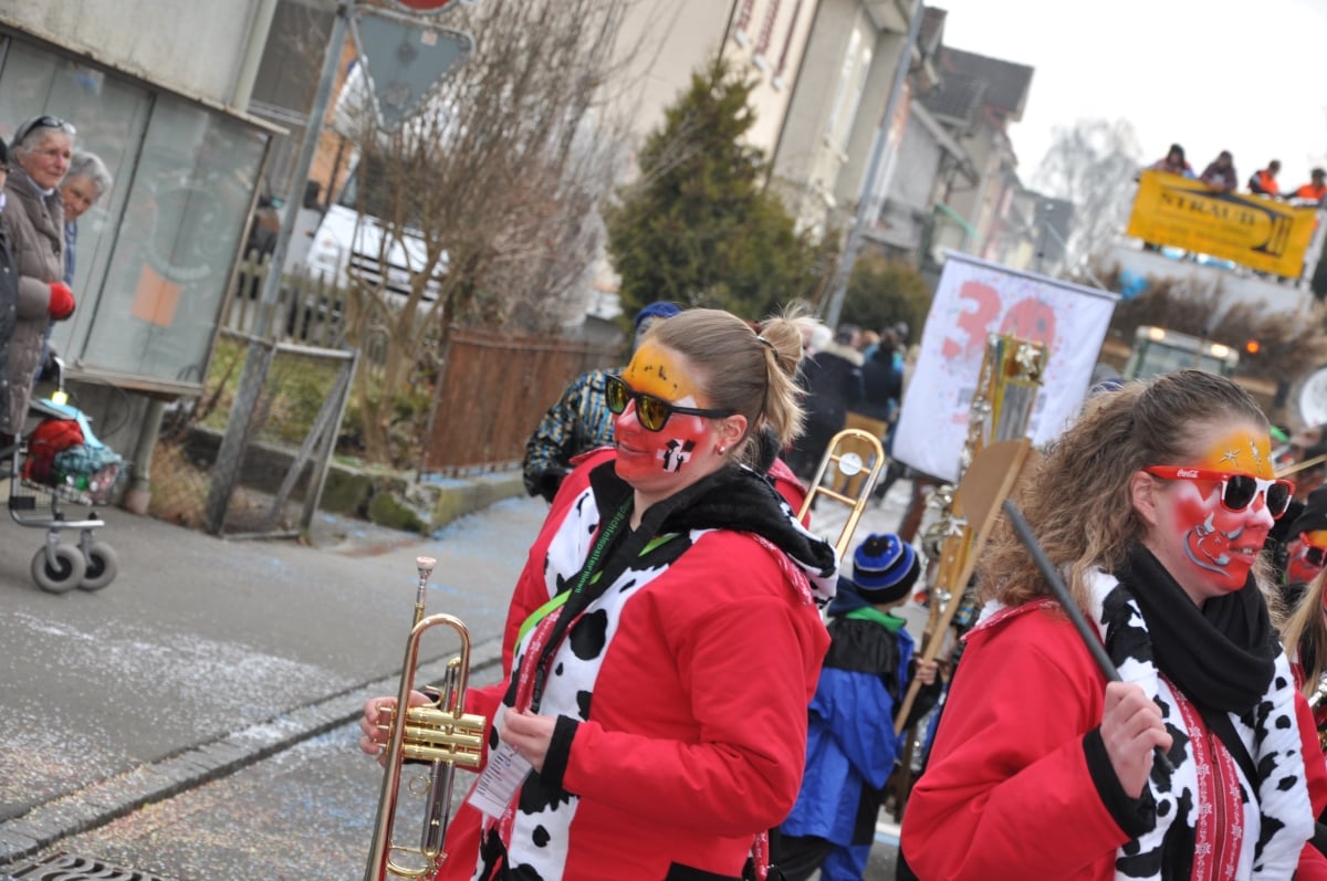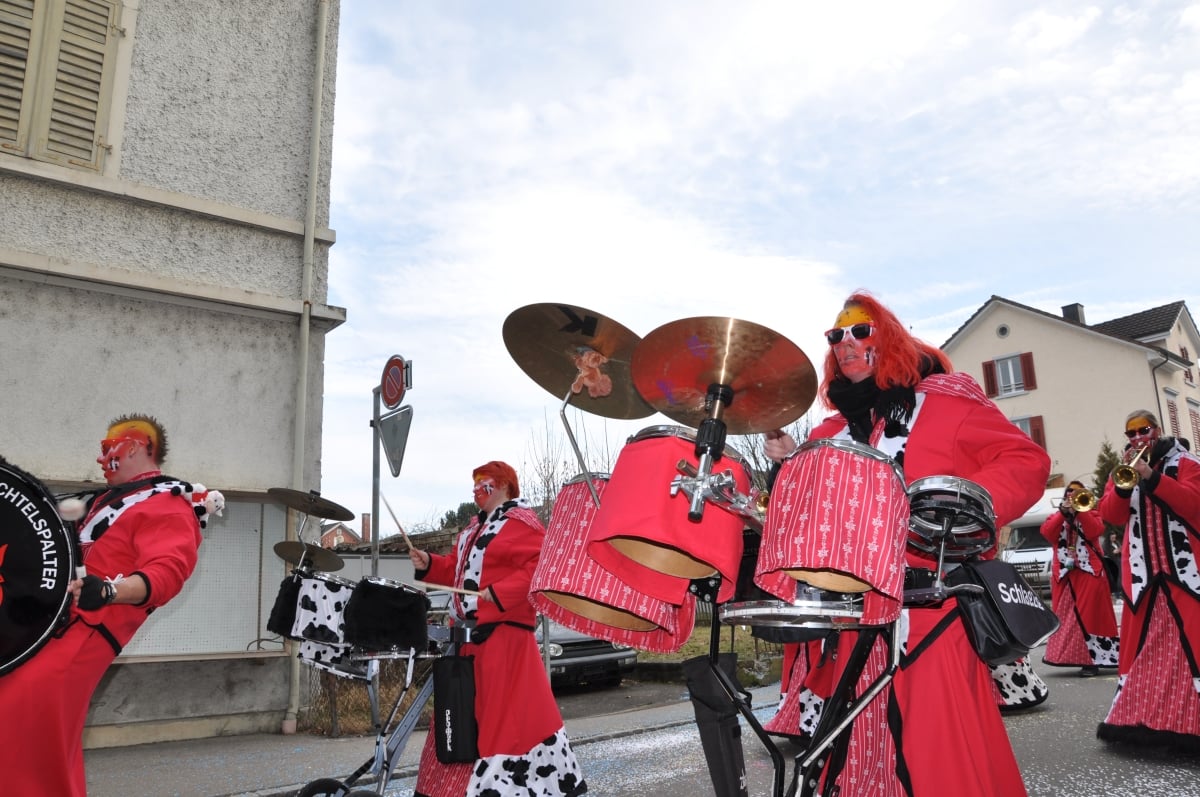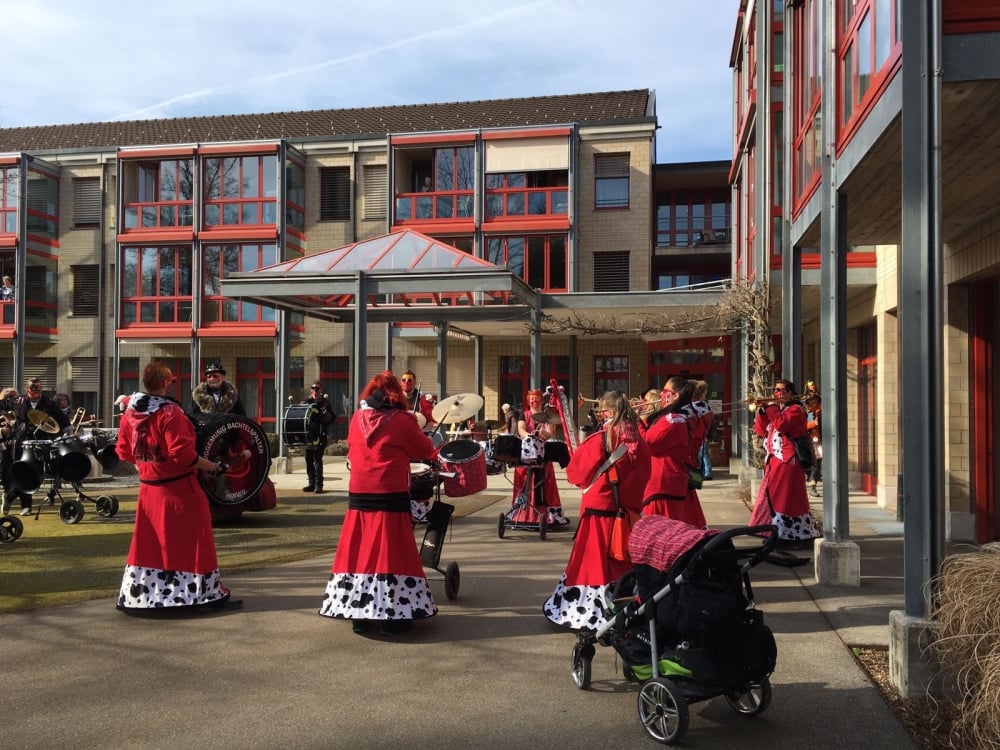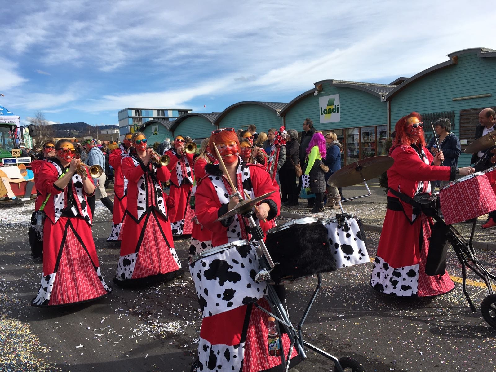 Nachere churze Nacht häts am Sunntig zum glück wieder Schminki is Gsicht gäh und dänn isch äs uf Robehuuse gange, wo mer bi traumhaftem Wätter uf dä Umzugsstart gwarted händ. Für euse chlini Huufe isch dä Umzug recht streng gsi, aber das super Wätter und dä viele Zueschauer wo freud gha händ, händ dä Sunntig zumene richtig coole Tag gmacht.