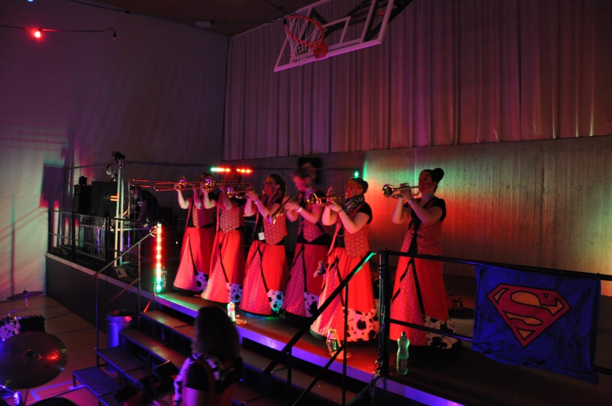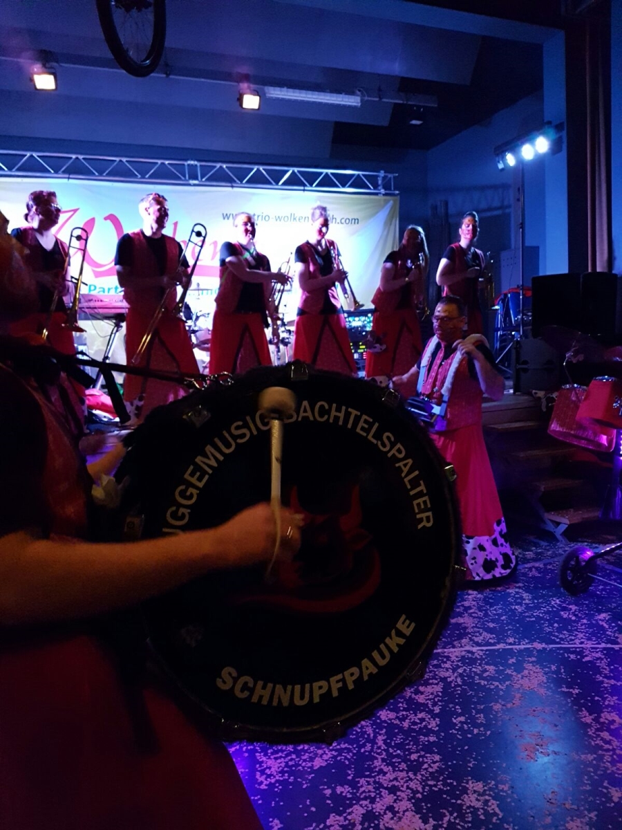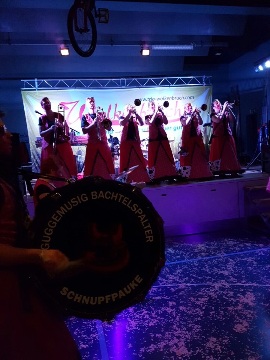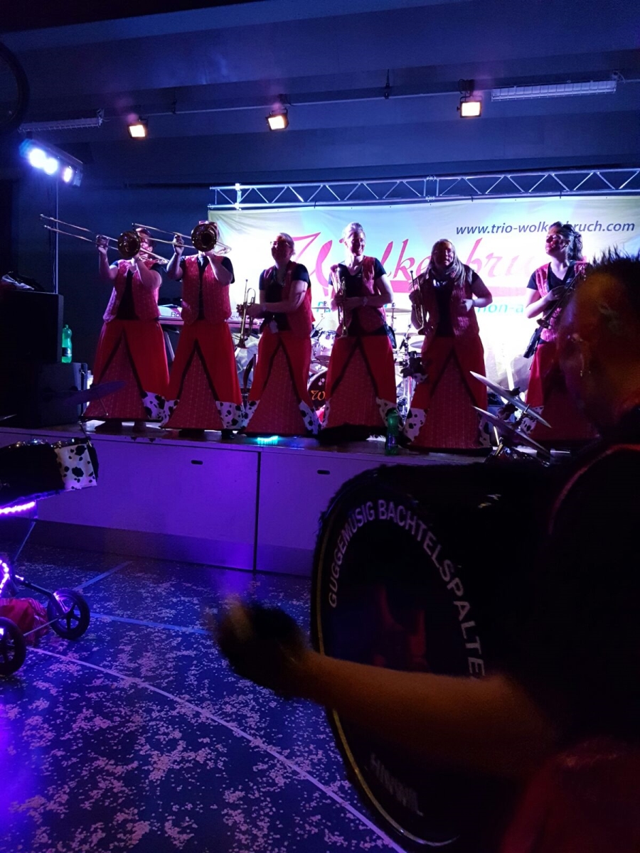 Mer sind am Maskeball in Buebike gsi und händ än hammermässige Uftritt gha. S'Publikum hät freud gha und ohni Zuegab hämer nöd dörfe use.