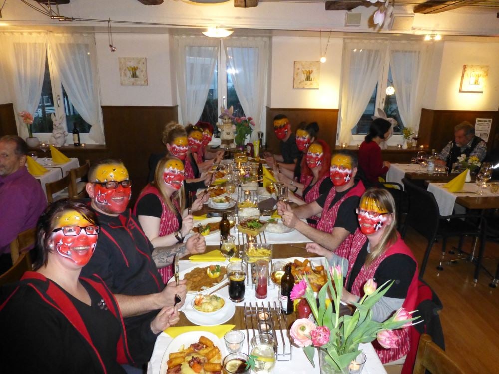 Und scho isch dä letschti Abig vo eusere Saison vor dä Türe gstande... Nachem schminke hämer euses Abschlussässe im Restaurant Salzwaage in Stäfa gha. Sehr fein isch äs gsi und mer sind mit vollne Büüch witer an Maskebal z Stäfa. Det hämer am 9ni euse Uftritt gha. Nachane isch äs witer gange uf Gossau ZH wo mer am halbi 1 euse letschti Uftritt vo dä Saison gha händ. Mer händ nomal alles gäh und äs hät so richtig grockt.