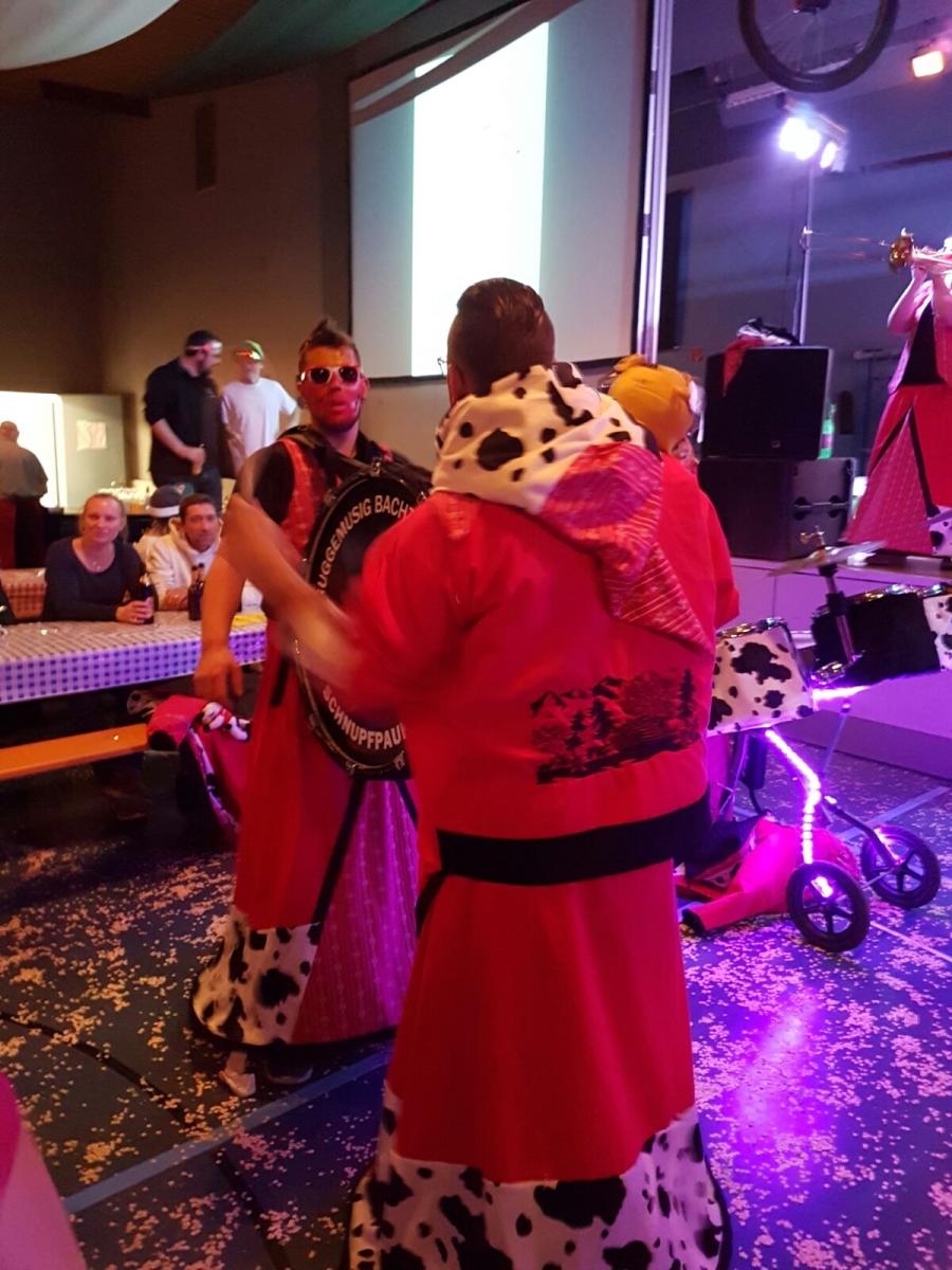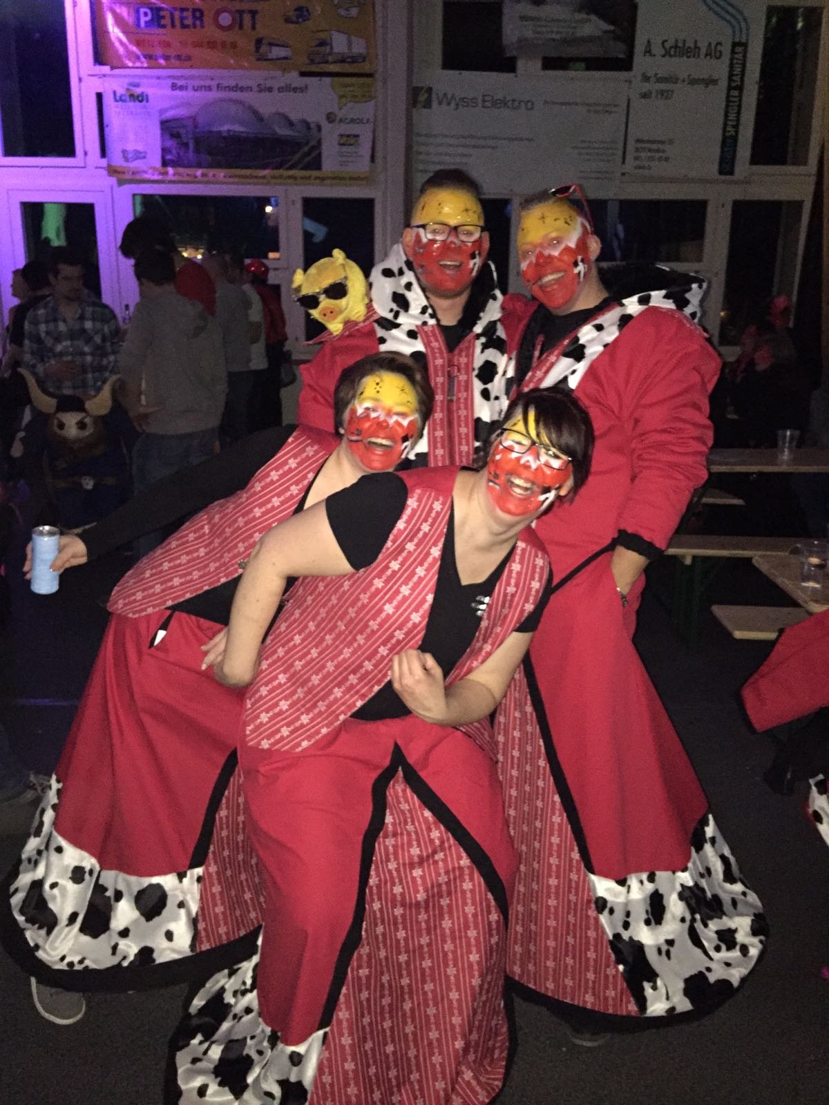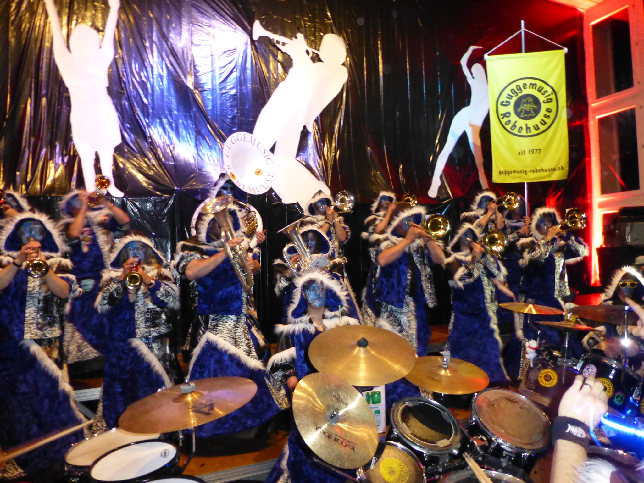 Neu kostümiert häts eus as Jubi vo dä Guggemusig Robehuuse zoge. Mer händ a däm Abig euses Kostüm no ohni Instrument teschted. Äs hät dä Tescht bestande, mer chan dämit bis i di frühene Morgestunde party mache. ;-)