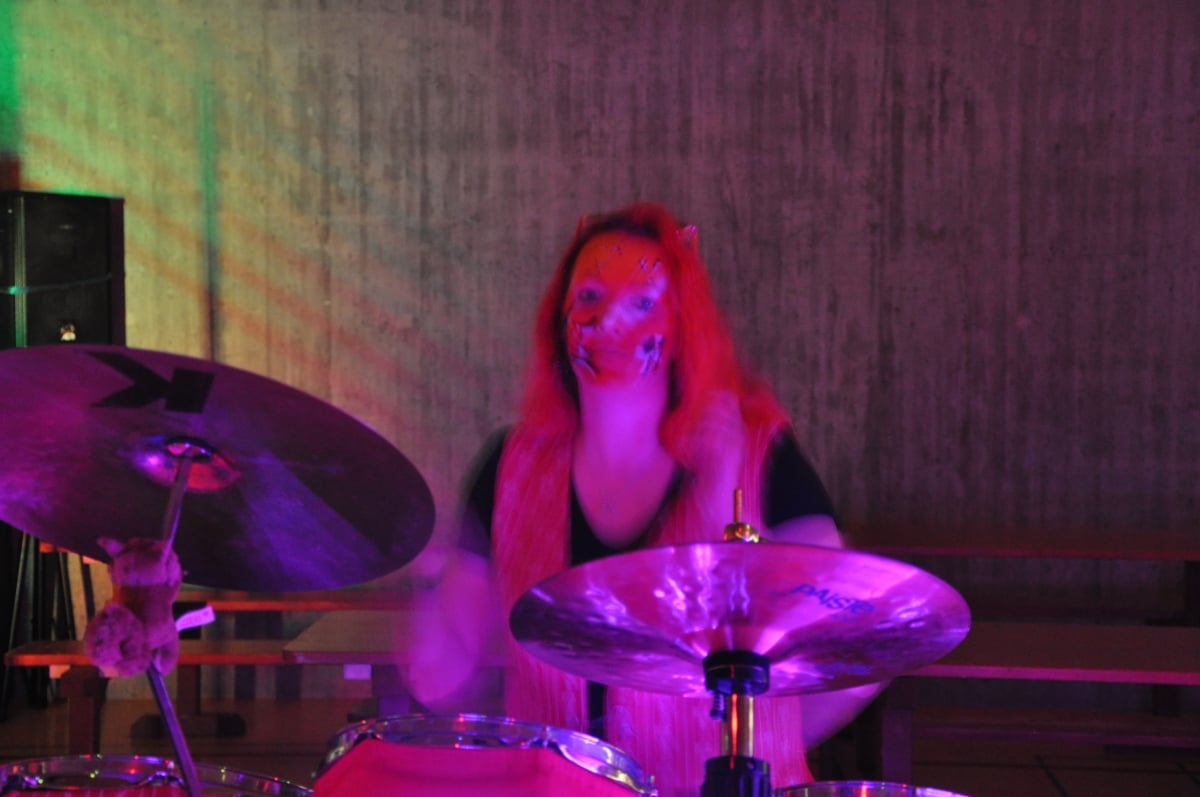 Am 6i hämer eus zum schminke troffe. Sehr sehr pünktlich simer am 8i id dä Platte / Züriwerk Buebike go spiele. Nachane simer zrug uf Hinwil und händ bim Fäschte uf euse Uftritt am 12i gwartet. Dä Uftritt hämer mitemene Überraschigs-Geburtstagsständli für eusi Jenni abgschlosse. Vo jetzt ah, verteilemer glaub regelmässig Wundercherze im Publikum, das gseht no cool us. ;-)