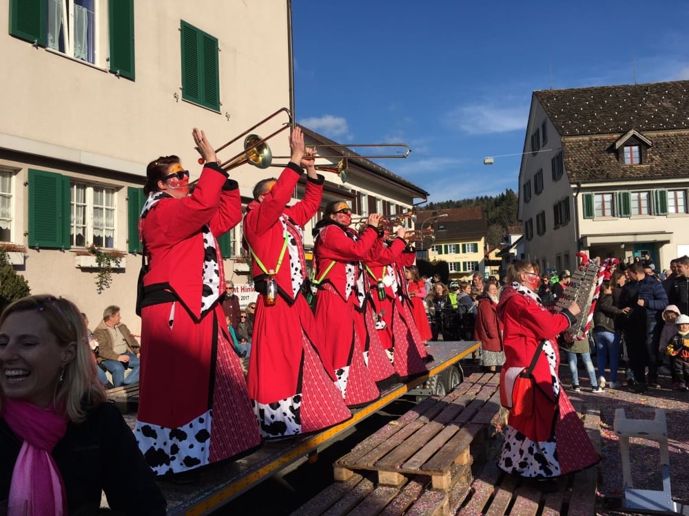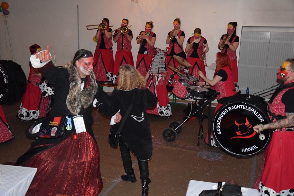 Dank wunderbarem Wätter isch dä chlini Umzug und d Strassefasnacht in Hinwil eifach en Traum gsi. Mitemene churze Abstächer is Altersheim, hämer au det no spontan äs paarne ä Freud gmacht. Nachem Monsterkonzert simer uf Buebike ist Bahnhöfli go fein ässe. Mit vollne Büüch hämer dänn am habli 9ni dä Maskeball Hinwil eröffnet. Dä reschst vom Abig hämer im Hirschesaal gfäschted.