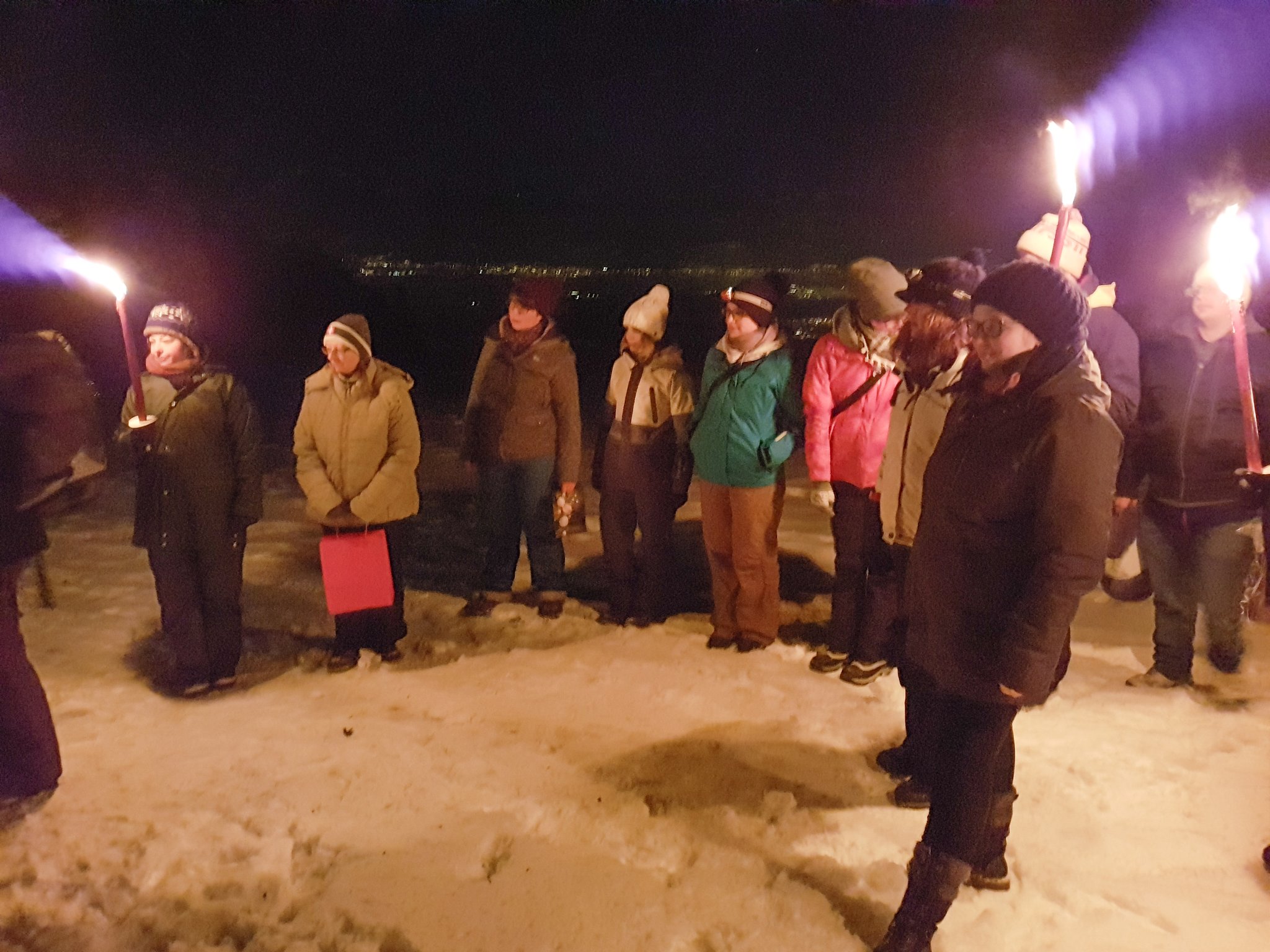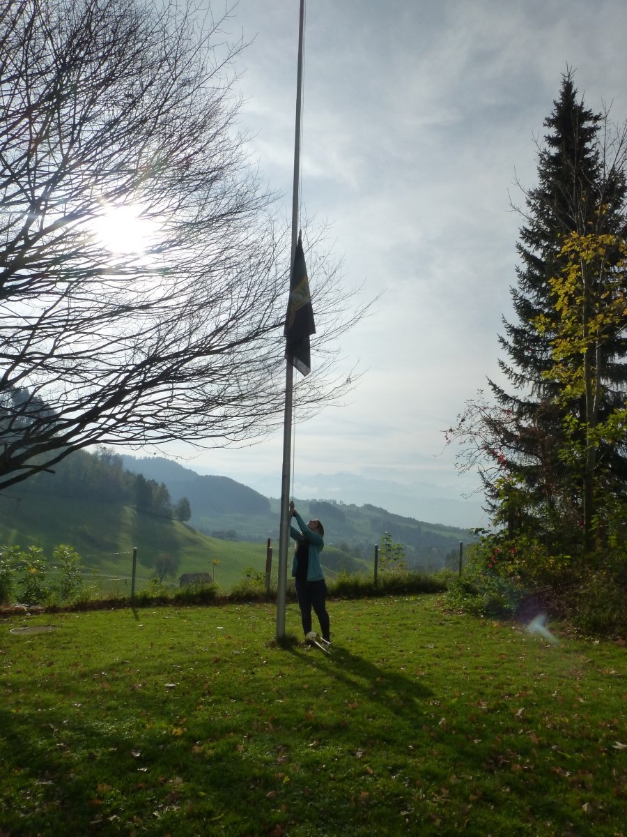 Nachem schminke hämer eus mitme Büsli uf dä Wäg richtig Romanshorn gmacht. Chappe und Händsche händ bi dä meischte dörfe dihei bliibe, däfür hät d'Sunnebrülle zum Gepäck ghört. In Romanshorn isch aber d'Entüschig gross gsi. Kei Sunne und chalt isch au no gsi. Hämer ächt di falsche Sache dihei lah?